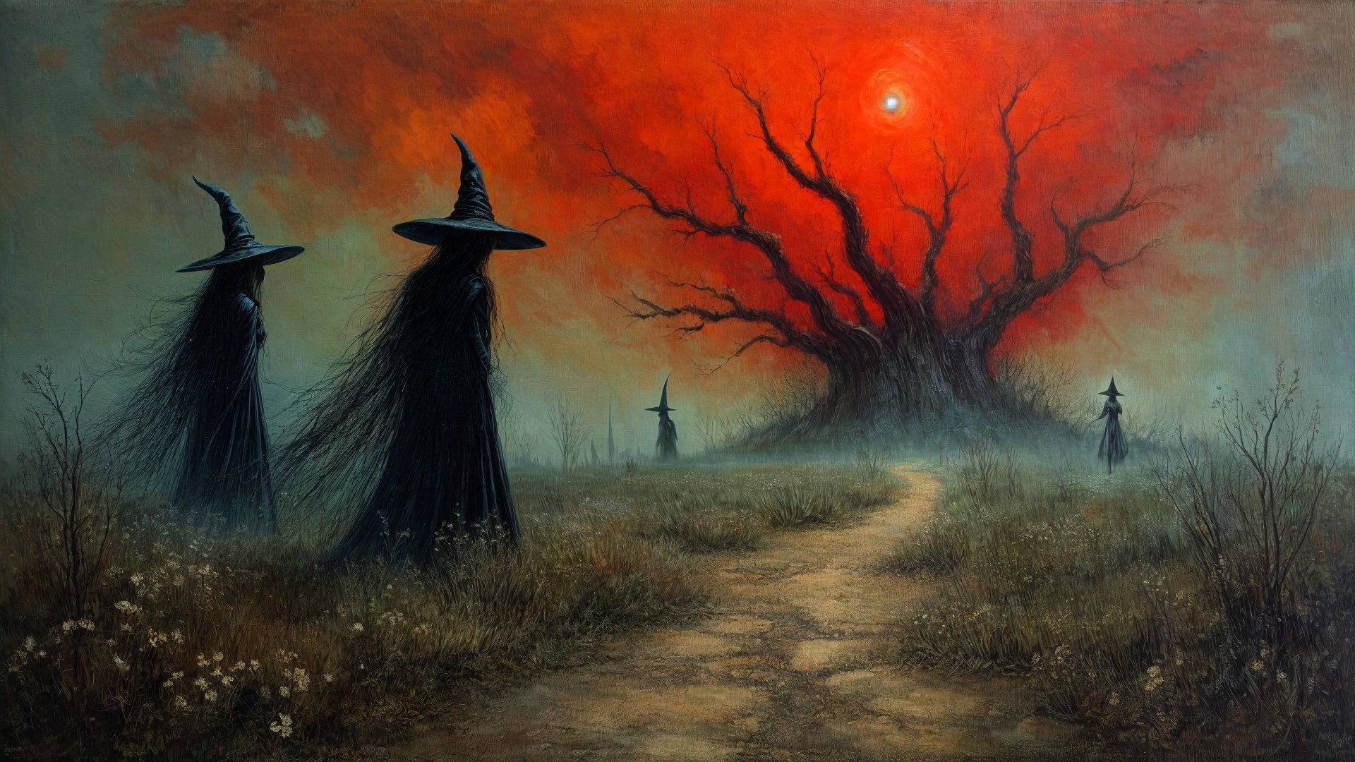 Prompt: Nuclear grieving. Disharmonic witches.