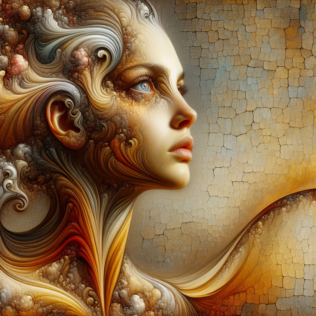 Prompt: In the style of Beksinski: female with long a neck , earth tones, insanely detailed and intricate, hypermaximalist, elegant, ornate, hyper realistic, super detailed, oil on cracked canvas, highly textured.