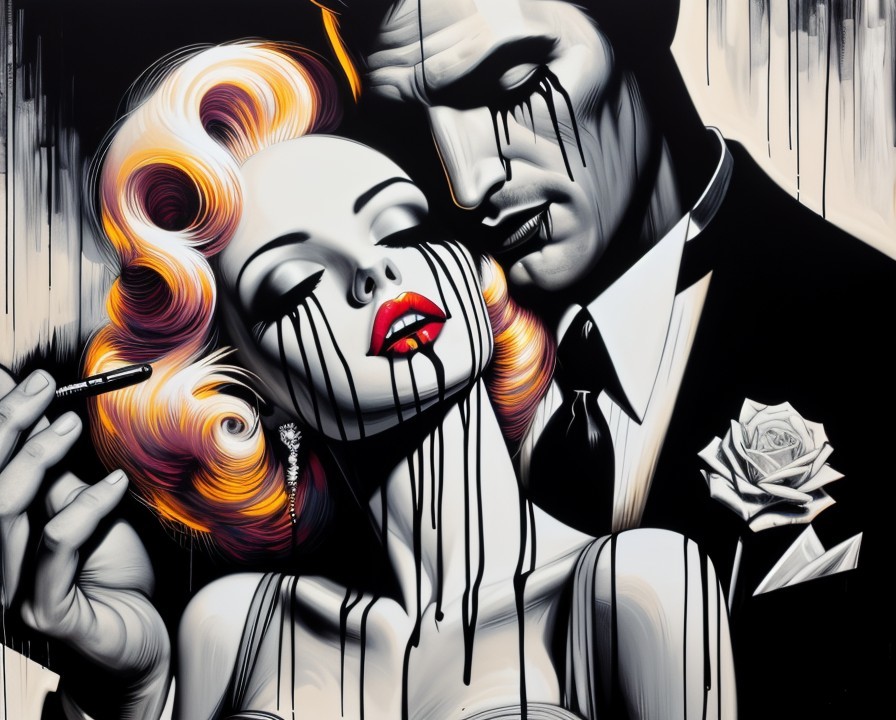 Prompt: A dark and unsettling semi-nude figure of a woman, made of charcoal and painted in oil, dissolves amidst cracked textures and splashes of ink in a surreal and decadent world. The humanoid form appears fragmented, as if eroding from within, surrounded by cryptic text and abstract stains. The background, rough like aged paper soaked by time, evokes themes of decay, vulnerability, and existential disintegration, in the style of dark surrealism.
