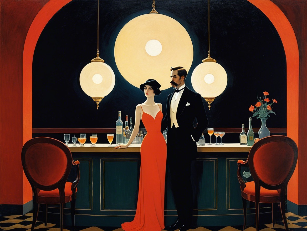 Prompt: Surreal Bar Room Scene Beauty New surreal world elegant fantasy in the style of Alphonse Osbert and uco Ueda.