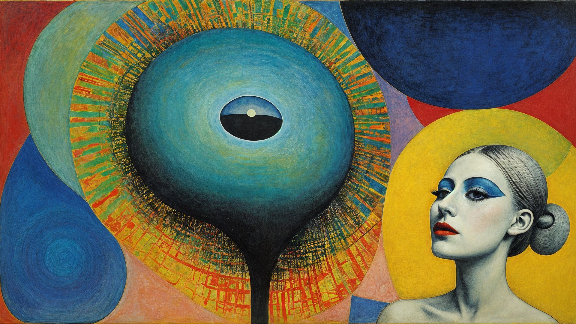 Prompt: Vibrant dandelion field, delicate white and yellow flowers, gentle breeze, golden sunlight, lush greenery, A strikingly minimalist watercolor illustration of a shadowy woman figure with shoulder-length hair. The woman is depicted in silhouette, swinging gracefully against a soft, gradient backdrop. Her hair flows gently behind her, adding to the sense of motion. The overall color palette is dominated by shades of blue and purple, with subtle hints of pink and orange. The composition evokes a dreamy, ethereal atmosphere., by Escher and Klimt.