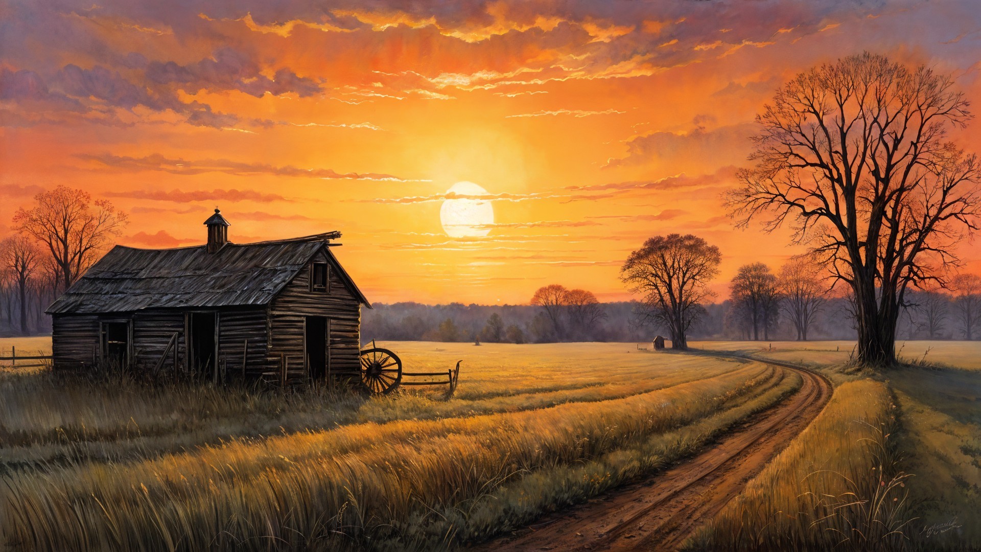 Prompt: Surreal glowing golden sun setting over a misty reflective lake, soft painterly textures, barren trees silhouetted in gentle fog, dreamlike light glowing on water’s surface, warm amber and gold tones, serene and mystical atmosphere, fantasy landscape art, --v 6 --style raw --ar 4:5