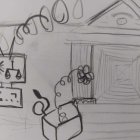 Prompt: minimalist flat line drawn cartoon, mike mignola, moebius, p craig russell, herge, ligne claire aesthetic, intricate, storytelling, wide landscape, stylised, extreme long shot showing the majesty of the scene, flat, no depth,side view