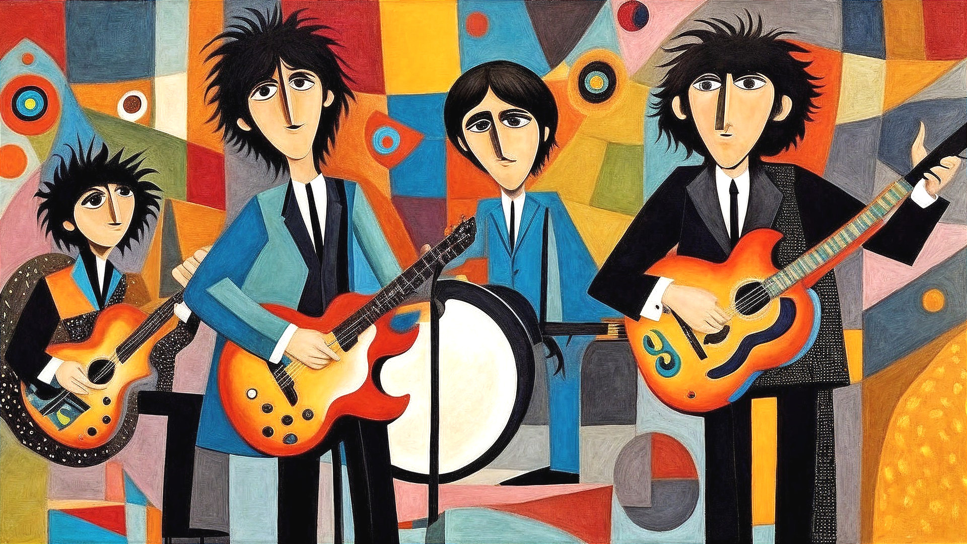 Prompt: This masterfully rendered, full-length digital painting depicts a stylized, ethereal, porcelain-skinned ballerina seated in a pensive pose atop a large, weathered, off-white sphere. Her head is slightly tilted, one hand gently touching her chin, and her gaze is directed downward through large, expressive, dark-rimmed eyes. Her short, choppy, platinum-blond hair frames her face, highlighting her delicate features and sharp chin. She wears a form-fitting, muted gray leotard with thin straps and matching light gray ballet tights that cling tightly to her slender legs, accentuating their length. Her pointe shoes are pale gold, with ribbons intricately wrapped around her ankles. The sphere she sits on has a textured, matte surface with subtle cracks and shadows that suggest age and weight. The background is a textured abstract canvas with multiple ribbons of blue and pink flowers swirling and blooming on the floor. The lighting appears soft and diffused, emanating from an unseen source, casting soft shadows and highlighting the contours of the ballerina and sphere. The overall tone is melancholic and artistic, with a painterly texture reminiscent of classic oil painting, but with a distinctly modern digital aesthetic. Keywords: digital painting, fine art, ballerina, abstract background, textured, muted palette, brooding, airy, dramatic lighting, painterly, detailed, 8k, masterpiece.