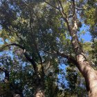 Prompt: Across a fog-shrouded plateau, a forest of metallic trunks rises like silhouettes against a dim horizon. Each branch hums with luminous code, tendrils of light crawling along translucent bark. Where leaves should be, clusters of data fruit glow—pearlescent spheres that pulse with memory. When they ripen, they detach and drift upward, unraveling into filaments that twist into the sky. Inside each filament, faint gestures and movements shimmer—data phantoms of human thought ascending toward the void.