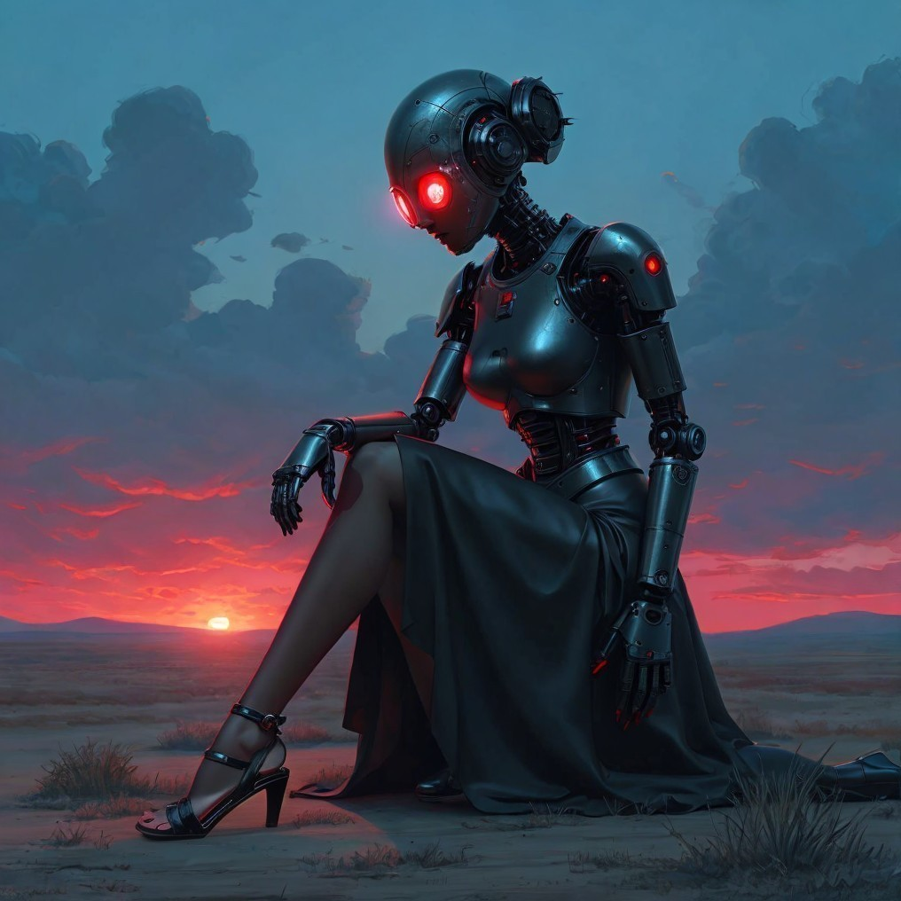Prompt: {she is breakdancing!} undiscovered in the deepest depths of criminal blasphemy, perfect subsurface scattering (SSS)) A ferrofluid Xeno woman, jet-black with bioluminescent techno-organic patterns and striped hair, gazes contemplatively with piercing brown eyes, trapped behind a cracked digital screen. Her head morphs into a flock of Matrix-style ferrofluid octopuses soaring through an impossible optical illusion structure. One side of her face shows smooth, natural skin with subtle wrinkles, defined features, and full lips, while the other is a futuristic, glitching interface with electric blue circuits and pixelated skin. The scene merges subsurface scattering, multiple exposures, and overlapped images for a hypnotic, blurred ghosting effect.