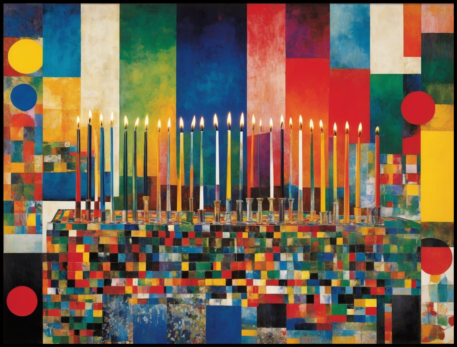 Prompt: Masterpiece, high quality oil painting in the hyper-realistic, abstract style of Rembrandt, capturing intricate lines, sharp magnificent details, and a romantic atmosphere. The composition follows the 2/3 rule, featuring a chain of dancers holding hands, barefoot and dancing in a brook, in front of a large cascade. Each dancer wears a different bright colour pants and t-shirt: red, blue, yellow, purple, green, orange. Some are facing towards and some away from the viewer, and all are in precarious positions. This dynamic scene, emphasizing the movement of water and the vibrant clothing which stands out against the dark background, boasts elaborate, delicate details and ultra detail, rendered with the masterful chiaroscuro and textural richness characteristic of Rembrandt's paintings.
