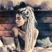 She stands on the cliffs of her Nordic country and gazing out to sea to look for Viking ships. in her face you can see the pride of the Nordic people. in her Hand she holds her sword artfully decorated with silver and Gemstones. Artistic Gordian knots can be seen all over her clothes