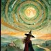 Prompt: Creating a painting "Witches" in the style of artist Ivan Marchuk is, first of all, his unique author's technique, which is called "plottanism." This style consists of applying thin intertwined lines of paint that form the image, creating a dense texture similar to a spider's web or a ball of threads.