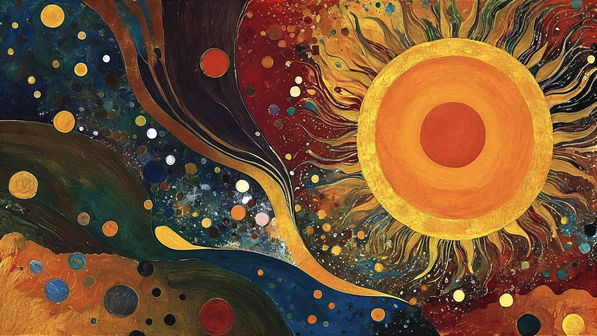 Prompt: Christian Schloe, Tom Everhart, Cy Twombly, David Downton, El Anatsui, Philip Taaffe, Jan Toorop, Koloman Moser: dappled light through fall leaves