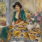 Prompt: ((A masterpiece in the impasto style)). A woman with a child of about 12 years old sits by a pond covered with water lilies. A painting by Berthe Morisot, known for her unique style of using delicate colors, light strokes