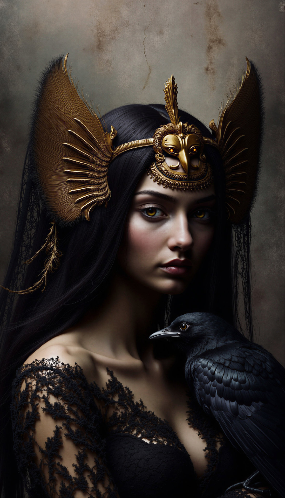 Prompt: A masterpiece of fantasy realism with elements of mystical futurism. A futuristic mechanical skeleton made of silver metal poses against the backdrop of a futuristic nighttime Wall Street. The mechanical skeleton wears a golden crown. In its right hand, holding the handle, it carries a golden metal briefcase.
