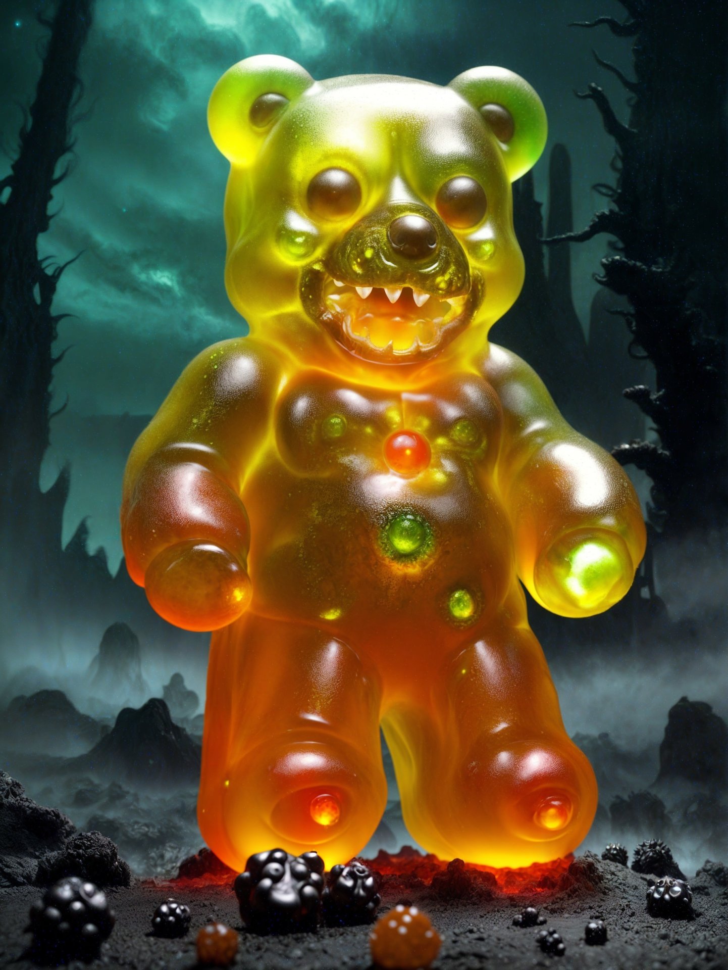 Prompt: Threatening, falsely comfy mood, autumn palette, awe-striking composition, masterpiece. Dinner scene, from afar. Wide stone hall with a long table draped in black and white, and four heavily overweight black people in riches are standing, vehemently arguing while drinking expensive wine and eating dripping oily burnt food in humanoid form. They smile and they roar and they argue. In the middle, quietly sitting behind the table, last-supper-like, a beautiful alluring european woman appears disgusted by what's in her plate and what the others are doing. She fixates her fork with one hand and the other is on her face. She has pale white hair with faded rainbow strikes, piercing grey-blue tired and sobbing eyes. Her smile is long gone. She wears a dark oversized hoodie over a ragged woven beigeish cardigan top and ragged and damaged jean shorts, grayish old rétro futurist car on boots visible under the antic wooden bus. The light is divine-like, coming from above, but in green and orange tones, as if the scene was set in a hellish palace way underneath. We've been digging for a long time now, and there's no telling who or what will next be in motion. no artist signature