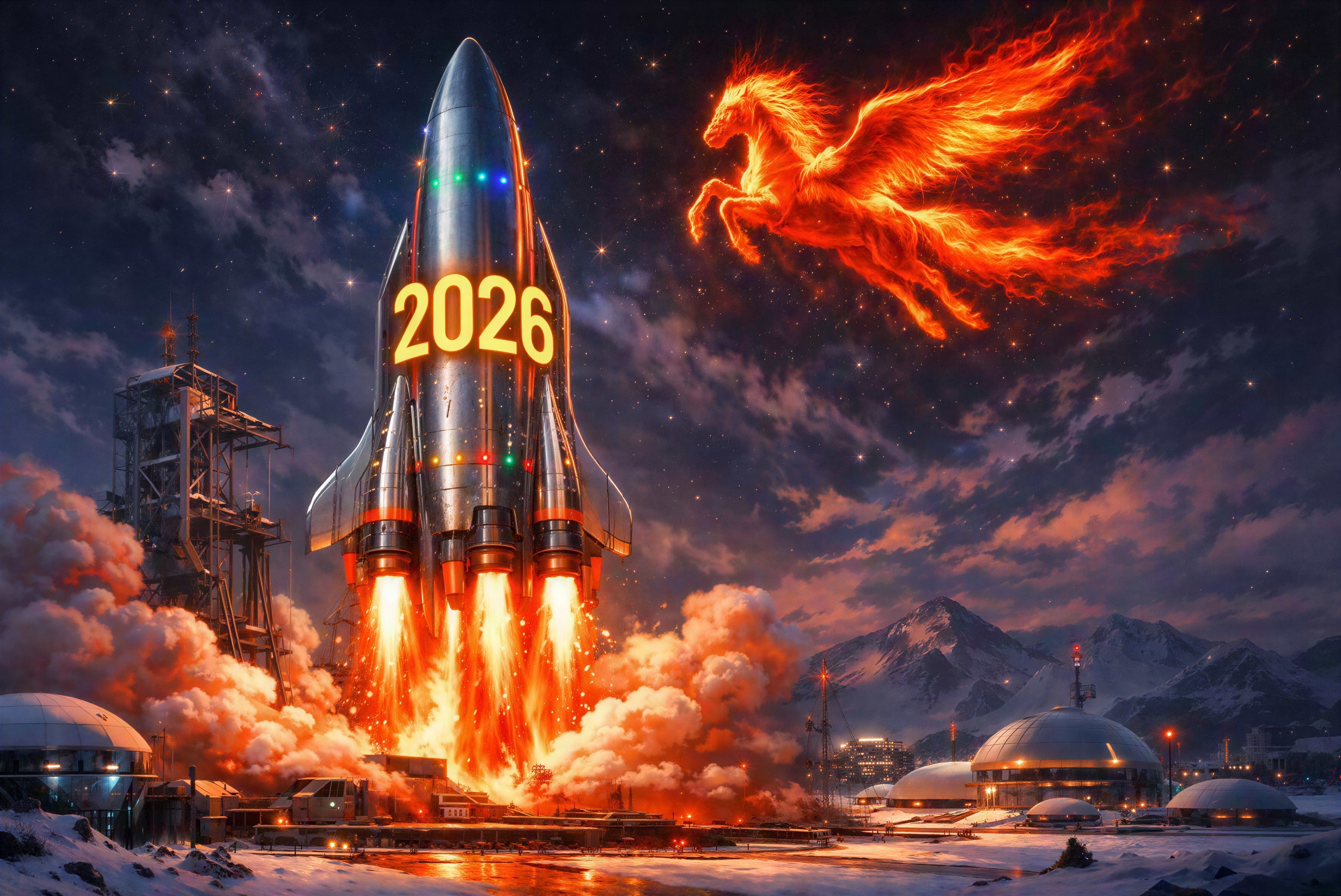 Prompt: A dreamy winter scene featuring the phrase “Wishing you a Happy 2026” in elegant frosted silver lettering, positioned prominently in the foreground. Behind it stands a majestic snow-covered castle with tall spires, bathed in the soft purple and blue hues of twilight. The castle glimmers with delicate ice crystals that catch the fading light, while gentle snowflakes drift down through the crisp air. Warm lantern-style lights glow softly along the castle walls and pathways, casting a golden radiance that contrasts beautifully with the cool tones of snow and ice. The atmosphere feels serene and enchanting, evoking a magical winter fairy tale mood with a sense of peace and wonder.