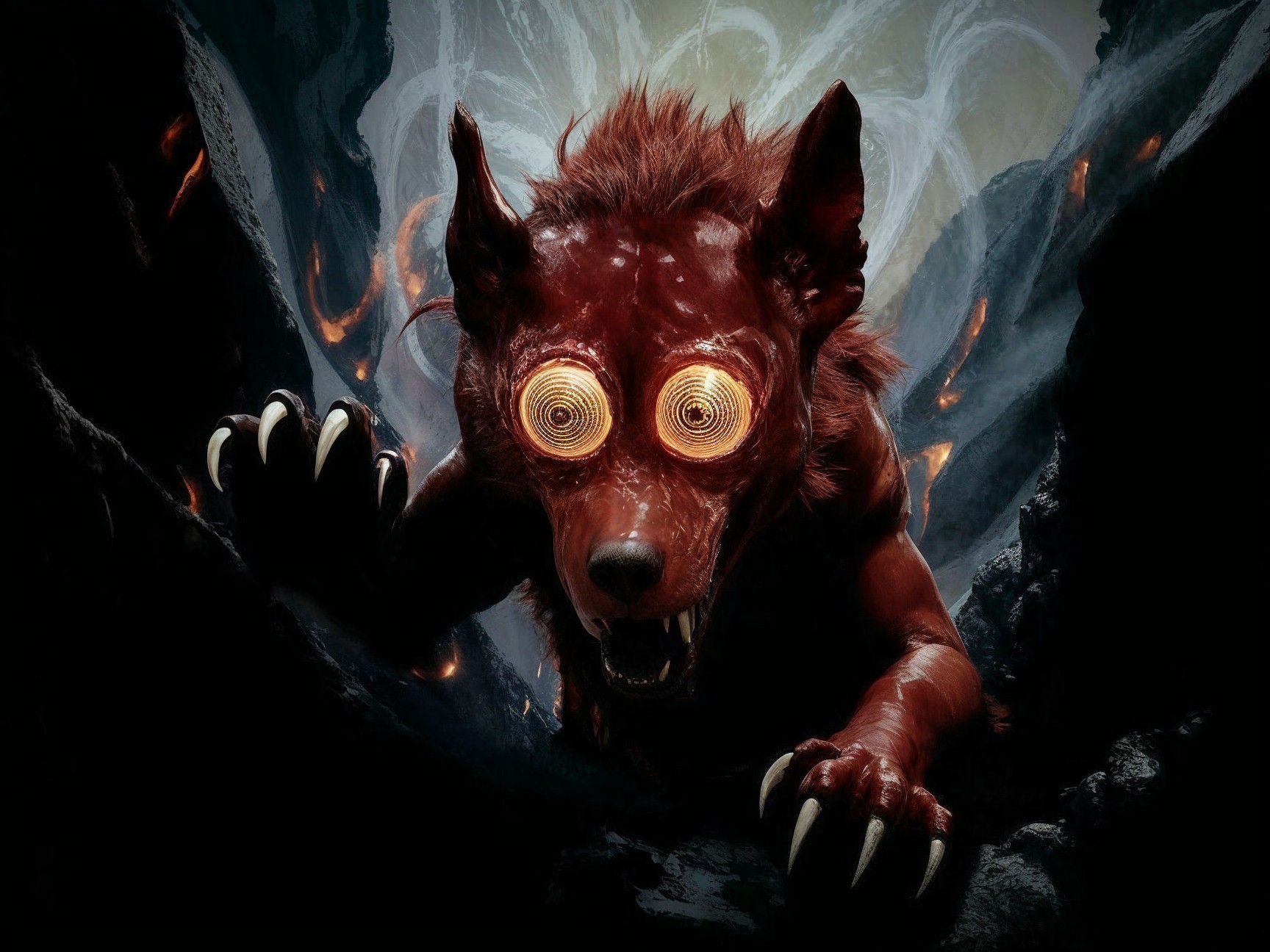 Prompt: Razorneck, or a carnal-dog-thing Carnal in fury, carnal in lust You burn from the power, it tremors the senses Keen and cool and ready for blood
