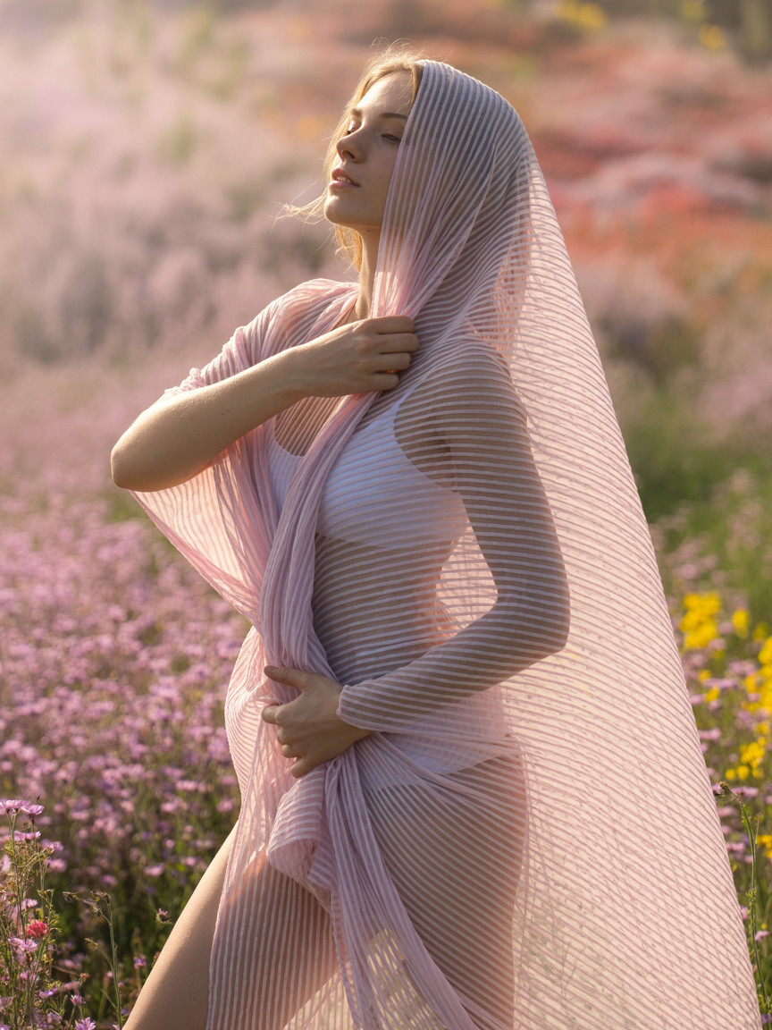 Prompt: Pink wildflowers in the styles of Alphonse Mucha, Gustav Klimt, Warwick Goble, Frances MacDonald McNair ,Beautiful Woman :: by Russ Mills :: rendered in a mix of Russ Mills' signature blend of atmospheric, abstract-expressionist brushstrokes and ink / pencil painting details, mix media style,in the style of Luis Gabriel Pacheco, Jean-Baptiste Monge, Harry Clarke, Agnes Cecile, Anna Sui and Richard Burlet,by Medlinyelle