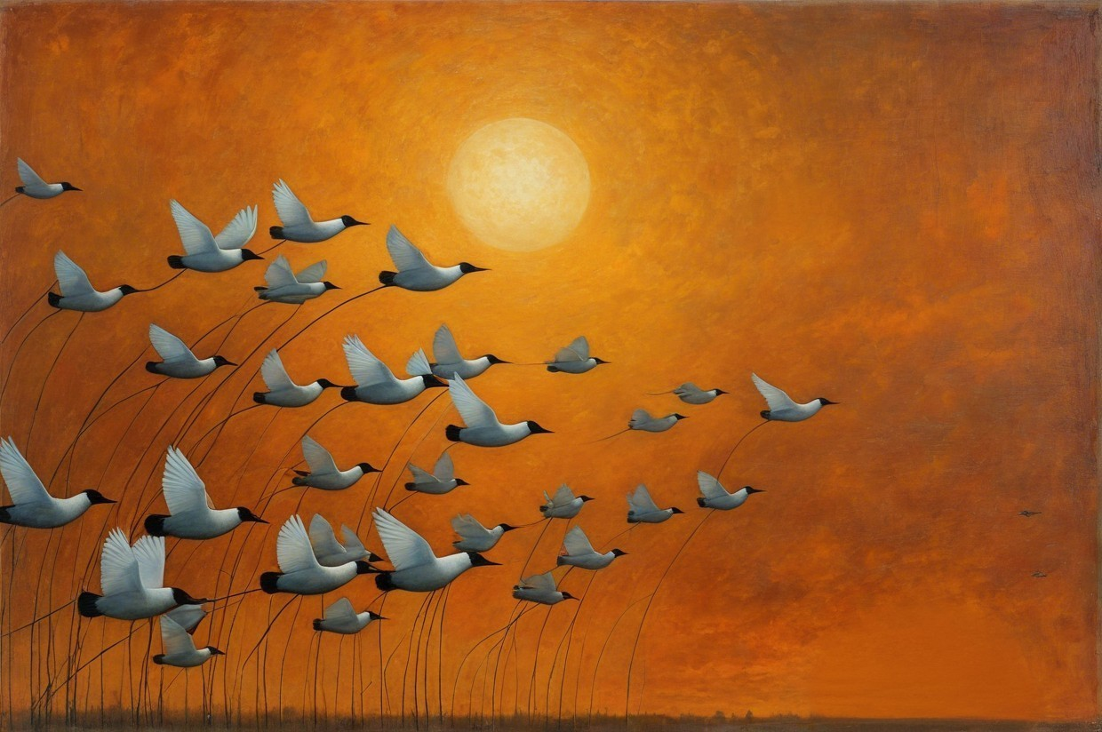 Prompt: A breathtaking autumnal landscape rendered in the intricate watercolor and ink style of Jamie Heiden, Walter Crane, Daniel Merriam, Ivan Shishkin, and John Atkinson Grimshaw, featuring a tranquil stone cottage with a teal roof and glowing windows nestled among vibrant flowers, greenery, and picket fences. A meandering river flows gently beneath an ancient stone bridge, surrounded by old olive trees, majestic birch trees, withered cattails, and Queen Anne's lace, set against a backdrop of mist-shrouded mountains. The soft-focus sunset sky glows with hues of Indian yellow, stark red, and earthy greens, creating an ethereal, fantastical ambiance with warm, intricate lighting. This surreal scene blends fine 3D line art and high-definition detail, capturing a harmonious retreat steeped in elegance and fantasy.