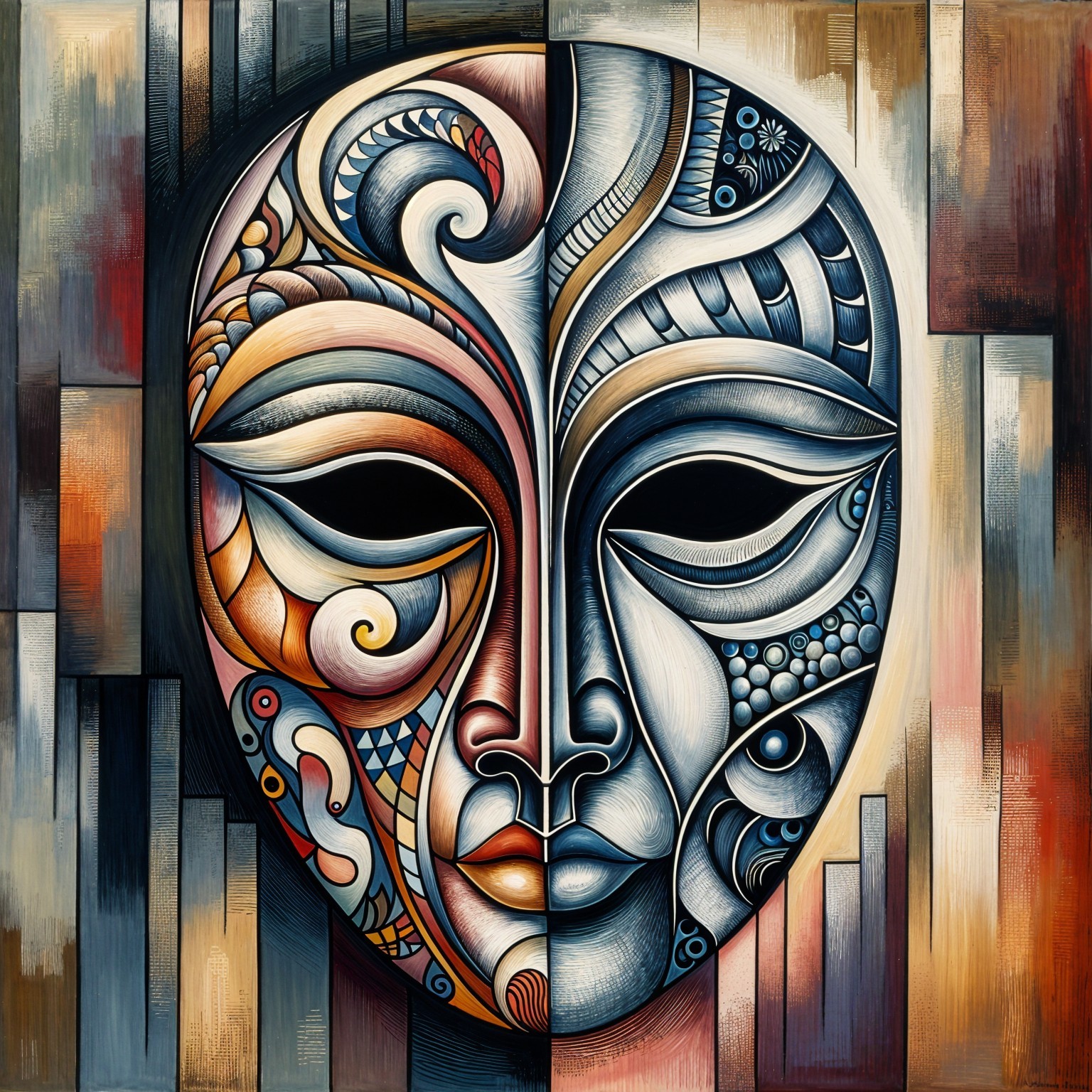 Prompt: ((A colorful and abstract Masterpiece)), ((A stylized portrait of a Black woman standing in profile, centered in a vertical composition. The woman appears to be of adult age, with dark skin and a graceful build. She is adorned in a long, form-fitting blue gown with intricate patterns and golden accents, and a matching head wrap. Her elaborate hairstyle incorporates spherical and ornamental elements in shades of blue and gold. She wears large, dangling earrings and holds a slender staff in her gloved hand. The woman's facial expression is serene and contemplative, looking to the left. The background is a mix of geometric patterns, and stylized staircases with a palette of gold, blue, and brown. Warm lighting casts soft shadows, enhancing the textures and the ornate details, suggesting a fantasy or Art Deco-inspired atmosphere. The perspective is slightly below, giving the figure a sense of regal stature. Hyperrealistic style. Pastel and oil painting), By Mamoru Nagano, Edward Gorey, Joan Miró, Beksinski, Aubrey Beardsley, Catherine Abel, Paul Klee, Tomasz Setowski, Dee Nickerson, Jaceck Yerka.