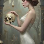 Prompt: Painting of a Japanese woman, central to the composition, depicted with an eerie, biomechanical fusion inspired by H.R. Giger’s art. Her delicate, yet alien-like features are partially merged with dark, twisting, organic machinery. The woman’s expression is haunting, caught between grace and unease, her eyes glowing faintly with an otherworldly light. She stands amidst a surreal, intricate landscape, where the organic and architectural elements intertwine — gnarled trees with skeletal branches, towering biomechanical structures, and intricate alien textures. The scene is shrouded in deep shadows, with unnaturally dark, ambient lighting casting an oppressive atmosphere. The background is filled with a dense, eerie fog that adds depth and a sense of foreboding. Her surroundings feel alive, as if the landscape itself is pulling at her, both supporting and suffocating her in equal measure. The composition is highly detailed, creating a layered, complex scene that evokes a sense of ancient, forbidden knowledge — a chilling, otherworldly harmony of the human and the mechanical, influenced by the Necronomicon.