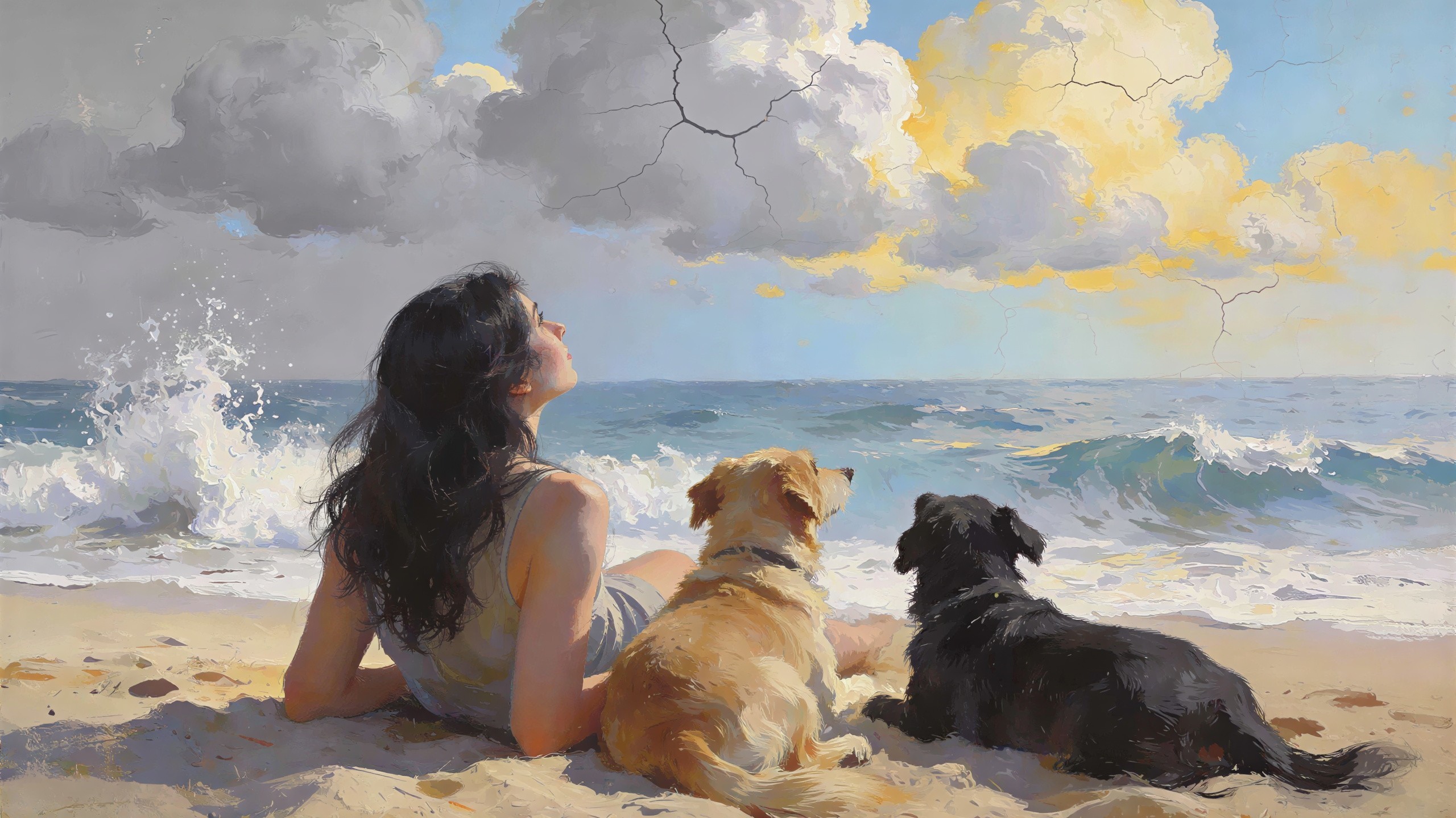Prompt: A classic oil painting in an ornate gold frame hangs in a softly lit museum hall. The portrait’s subject — a noblewoman — begins distorting out of the canvas, her hands and face emerging in 3D as if trying to escape. Her expression turns desperate, while the painted surface around her tears and cracks. One hand reaches beyond the frame’s edge. Dramatic museum lighting creates strong highlights and shadows. Golden ratio composition, with aged texture and subtle dust in the air for eerie cinematic realism.