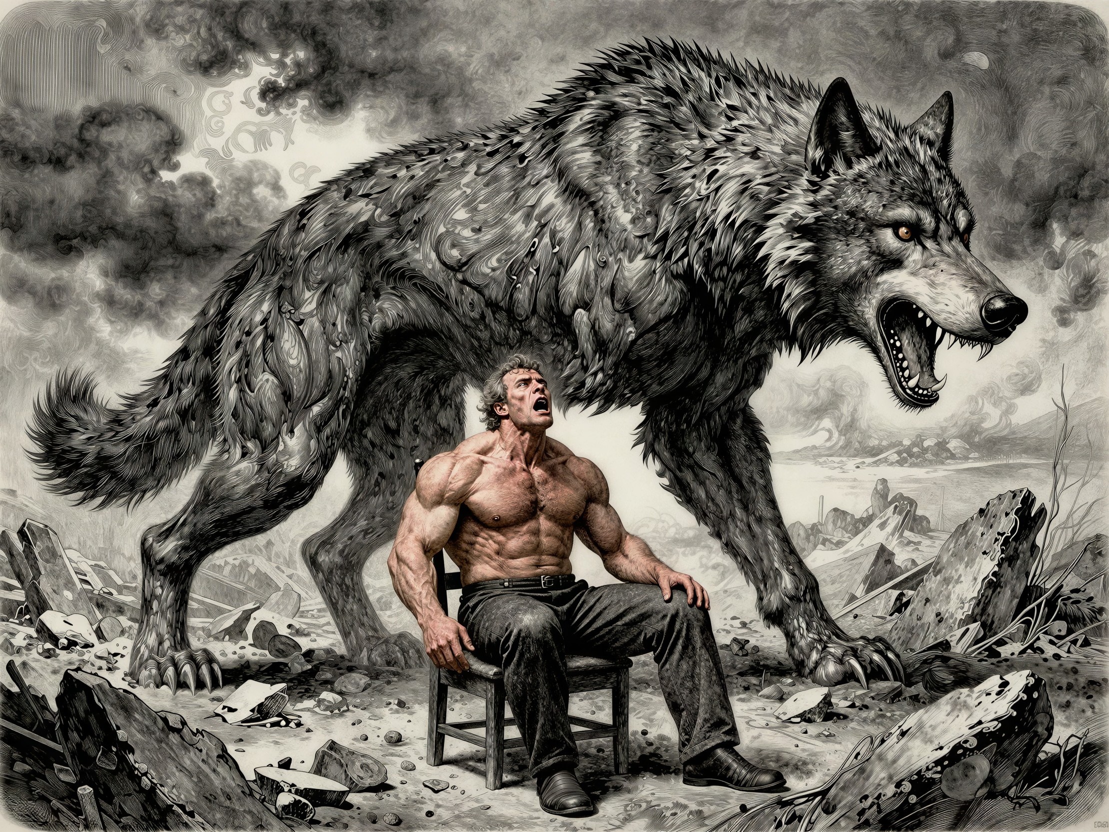 Prompt: A realistically rendered hybrid between a gray wolf and a telephone stands in a misty forest at dawn. Its natural anatomy and proportions are those of a wolf. It has discreet, telephone-like face with a rotary dial, and an expressive gaze. Cinematic lighting, shallow depth of field, ultra-detailed fur, muted natural colors—a realistic style by Gustaf Tenggren, Terryl Whitlatch, and Aaron Sims.