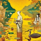 Mood: contemplative, inventive, otherworldly—suggesting a time-traveler, astral engineer, or cosmic alchemist manipulating knowledge, time, or energy itself.