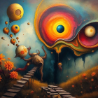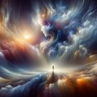 Prompt: Gothic woman's face in double exposure, merging with majestic landscape, lakes for eyes, tears as streams, autumn scenery, red leaves, blue water, black and green ground, black hair framing under blue sky, 8K resolution, oil painting, nature colors, epic, stunning, serene, elegant, colorful, ultra-detailed, beautiful