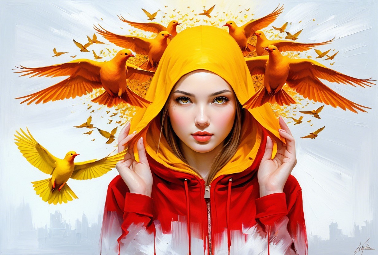 Prompt: A girl with a raven,Luis Royo rendering. Minimalism, optimism, and positivity. Elegant, interesting, full-length erotic art. Style: Daniel Egneus, Arush Votsmush. Boho colors: pistachio, apricot, and lavender. Luis Royo Boris Vallejo and Frank Razetto.