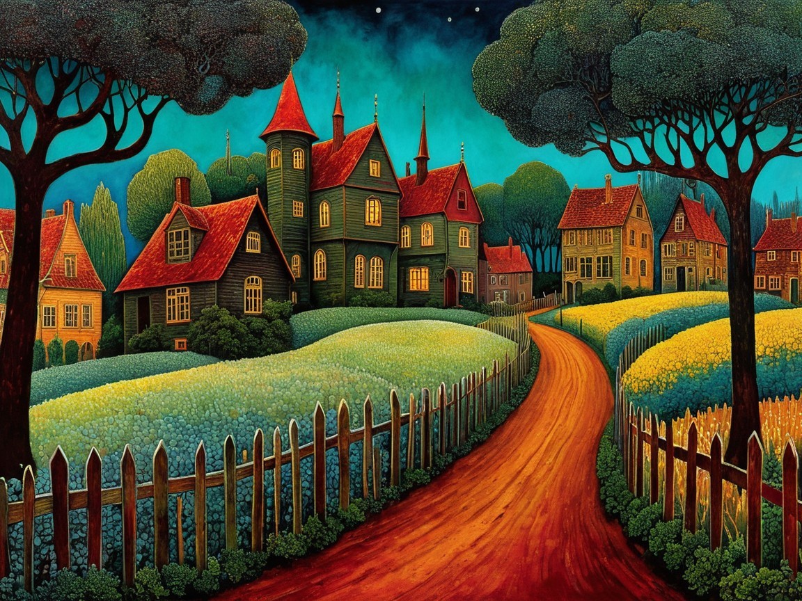Prompt: Halloween, All Souls' Day, in Mexico at an old cemetery. Many people are having picnics at the graves, everything lit by candles, at night. Cheerful and colorful clothin, colourful, Style: Z. Beksiński, O. Redon, Remidios Varo, abstract expressionism, primitivism, naive art, Art brut, Chagall, Matisse, Max Ernst, Francis Bacon, psychedelic