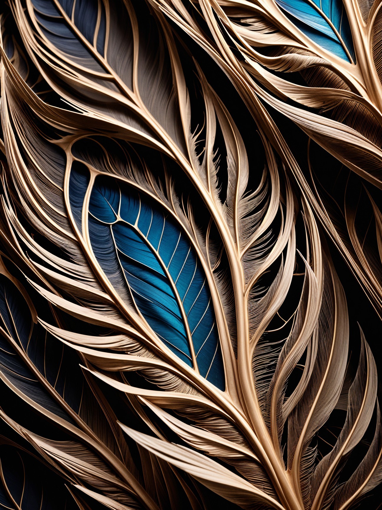 Prompt: A fusion of organic and architectural forms — a vision of biological architecture. Macro photography style with vivid natural textures: feathers, petals, and delicate organic surfaces intertwined with subtle gothic elements. Structures appear alive, as if grown rather than built, with 3D depth and intricate details. Light plays through translucent layers like stained glass made of living tissue. Energetic, artistic textures fill the scene — fluid, natural, and without straight lines, evoking movement and harmony between nature and design.