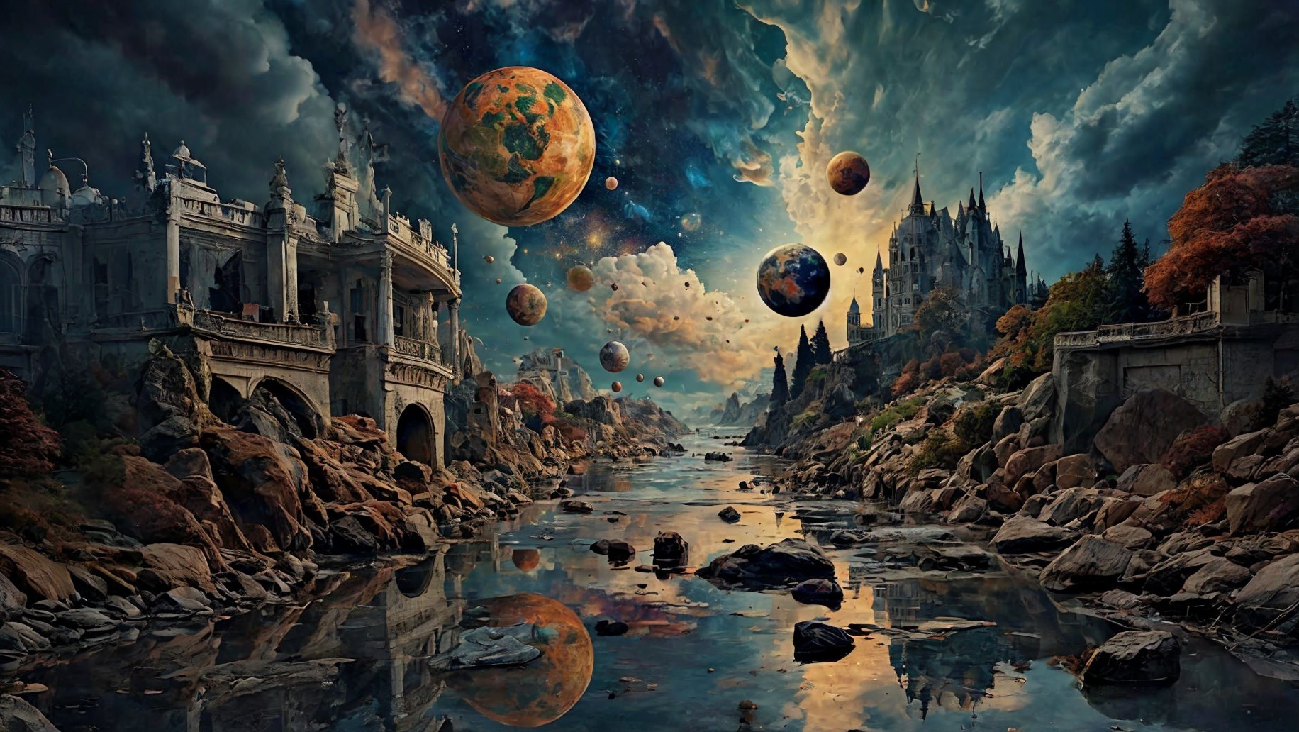 The image is to be created with the highest possible definition, ensuring every detail is meticulously captured. The color palette should reflect a colorful oil painting on a rainy night canvas, incorporating bittersweet, Indian red, redwood, cordovan, quinacridone magenta, Tyrian purple, and Russian violet hues. The style should embrace unstructured maximalism with novelty architecture elements, juxtaposed with hyper-structured minimalism. The overall aesthetic should evoke legit emotional reactions with perfectly resonated aesthetics.