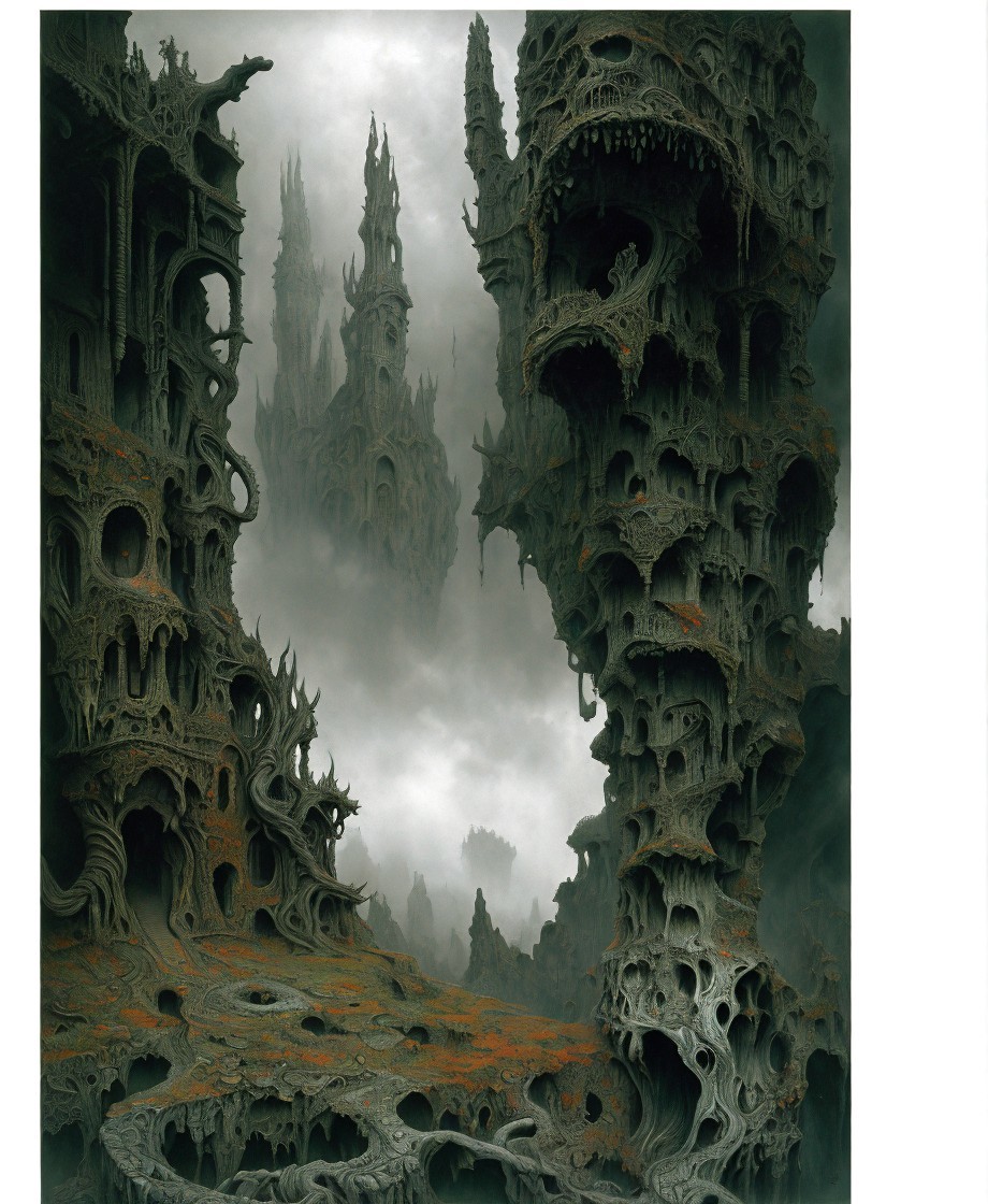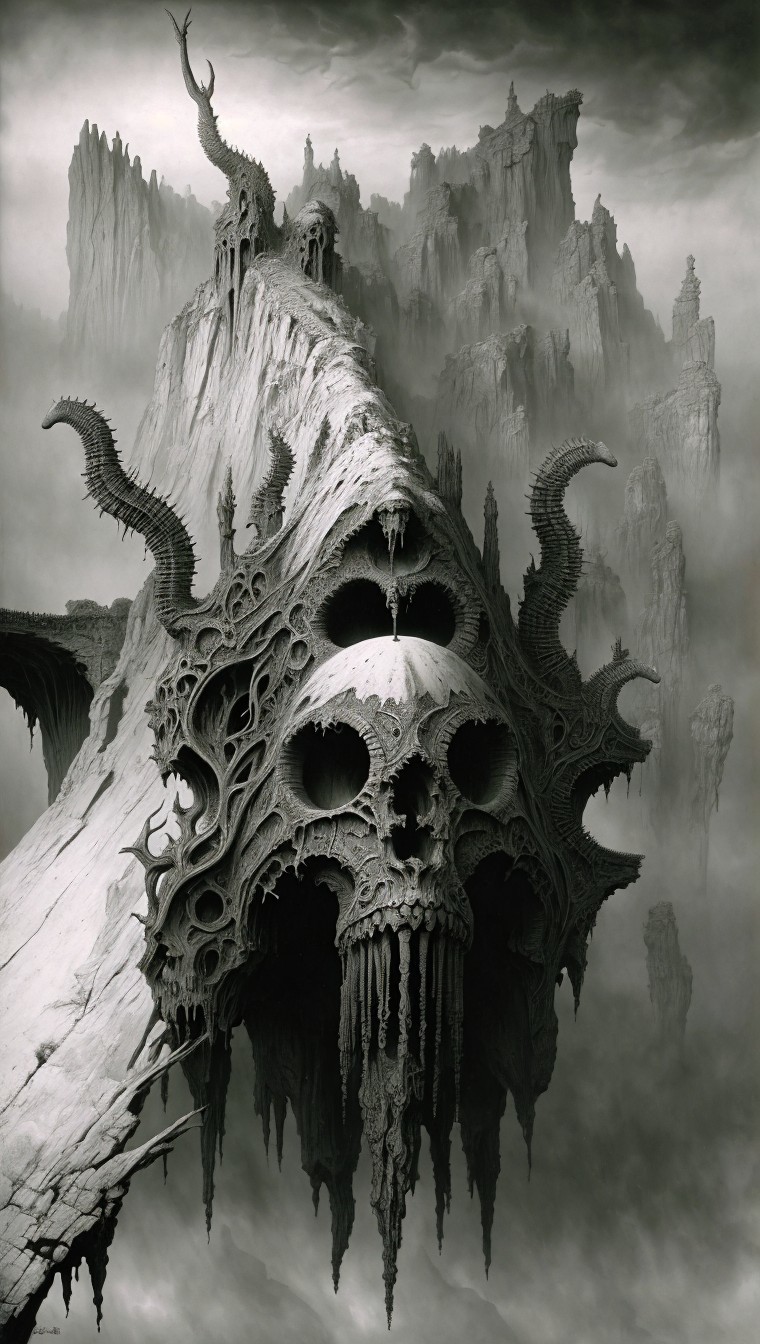 Prompt: Pintura de un abismo hasta el infierno hecha por MC Escher, Beksinski y Hr giger.
