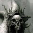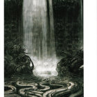 The image depicts a surreal, intricate coloured landscape filled with twisted forms and figures, blending organic and architectural elements, evoking a sense of depth and a dreamlike atmosphere.