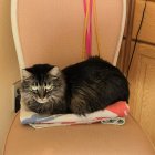 Prompt: A beautiful brown Maine Coon cat with glowing green eyes sits on a shelf in the eerie air of green vaporous spirits and bats. Haunted house and city lights in the background. Spiderwebs in the corners of the image. Halloween theme.