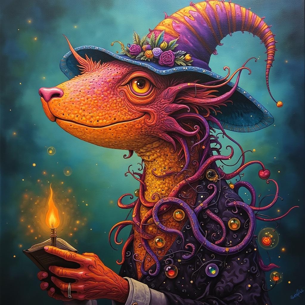 Prompt: Grim Reaper in a detailed full-body portrait, embodying strength and beauty, inspired by the styles of Thomas Kinkade, David A. Hardy, Carne Griffiths, and Mandy Disher. The key light delicately reflects in her eyes, enhancing the enchanting composition and lighting. The artwork features vivid and vibrant colors, with a fine art approach, focusing on intricate facial features and tiny details. The reaper is depicted in a flat, 2D style, exuding a cute and adorable aura reminiscent of a fairytale or storybook illustration. The image evokes a cinematic quality with an ultra-high level of detail, showcasing beautiful and mystical elements. The overall ambiance is imbued with luminism, bringing out the richness of the colors and creating a truly mesmerizing visual experience.