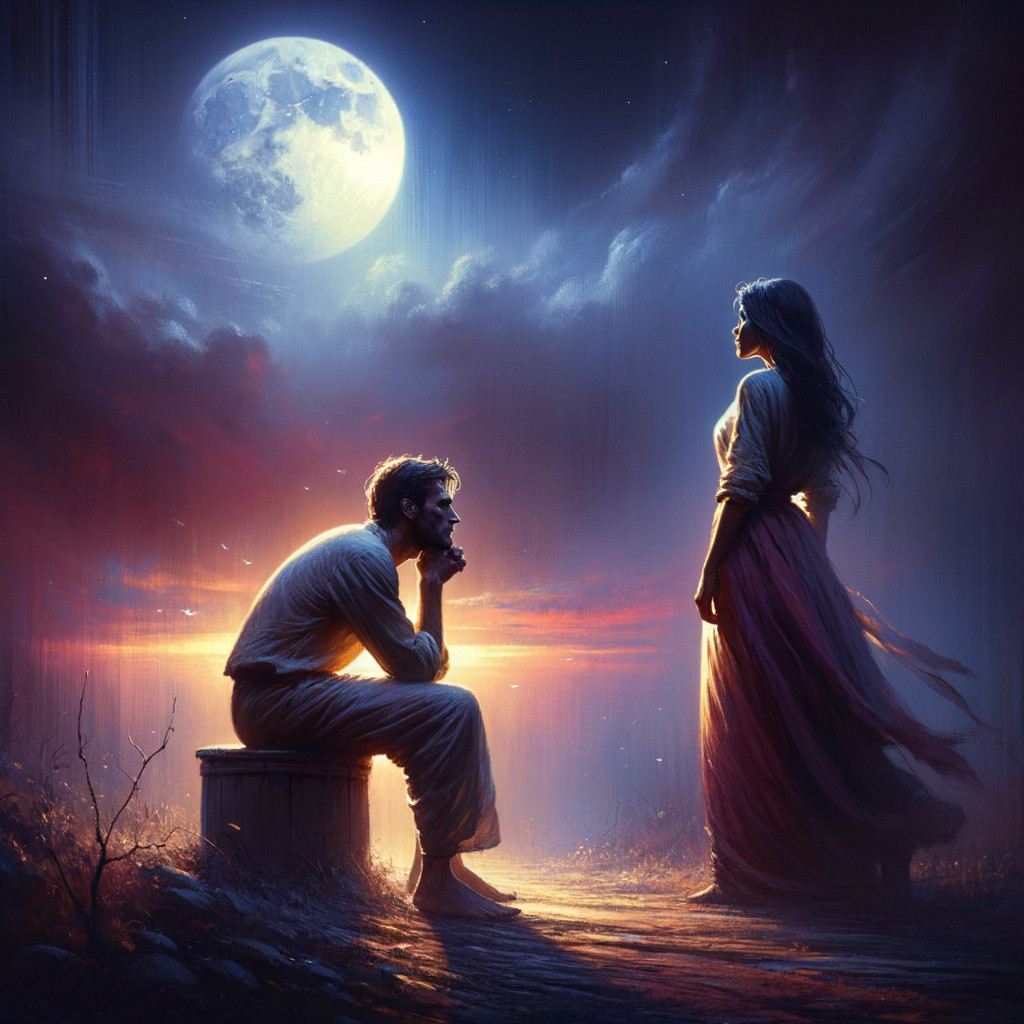 Prompt: A solitary lighthouse keeper on a rocky, storm-swept coast, gazing out at a tumultuous sea under a sky filled with shooting stars. The lighthouse beam cuts through the dense fog. The mood is dramatic and introspective, with a focus on atmospheric lighting and textured brushstrokes, evoking the maritime paintings of Winslow Homer and the dramatic chiaroscuro of Caravaggio.