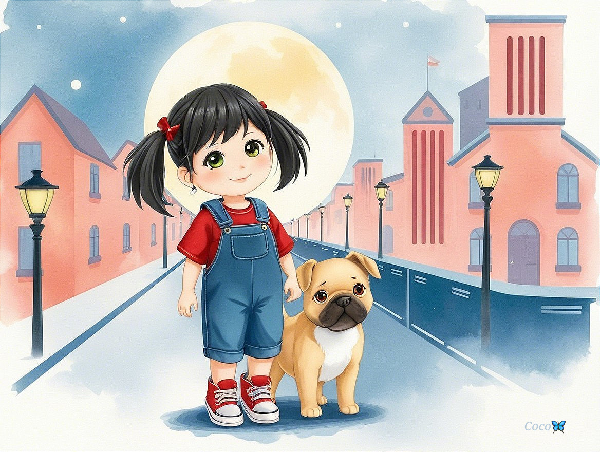 Prompt: A young girl with blonde hair is wearing a large, colorful straw hat adorned with a green bow. She is dressed in a bright, patterned dress with green and yellow stripes. Gently cradled in her arms is a fluffy black cat, which has striking green eyes. The background is softly blurred with warm, pastel colors, creating a whimsical and serene atmosphere.