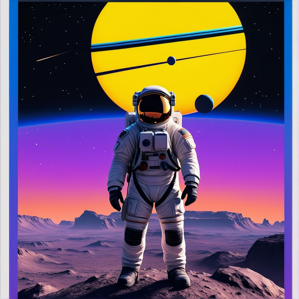 Prompt: an image of a lone Astronaut,staring at a planet landscape,on a planet landscape background,in the tone and style of Unreal Engine 5,8K resolution and tone
