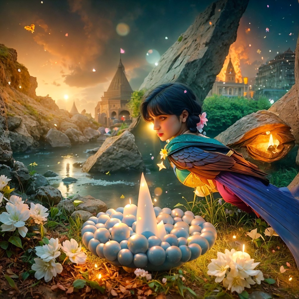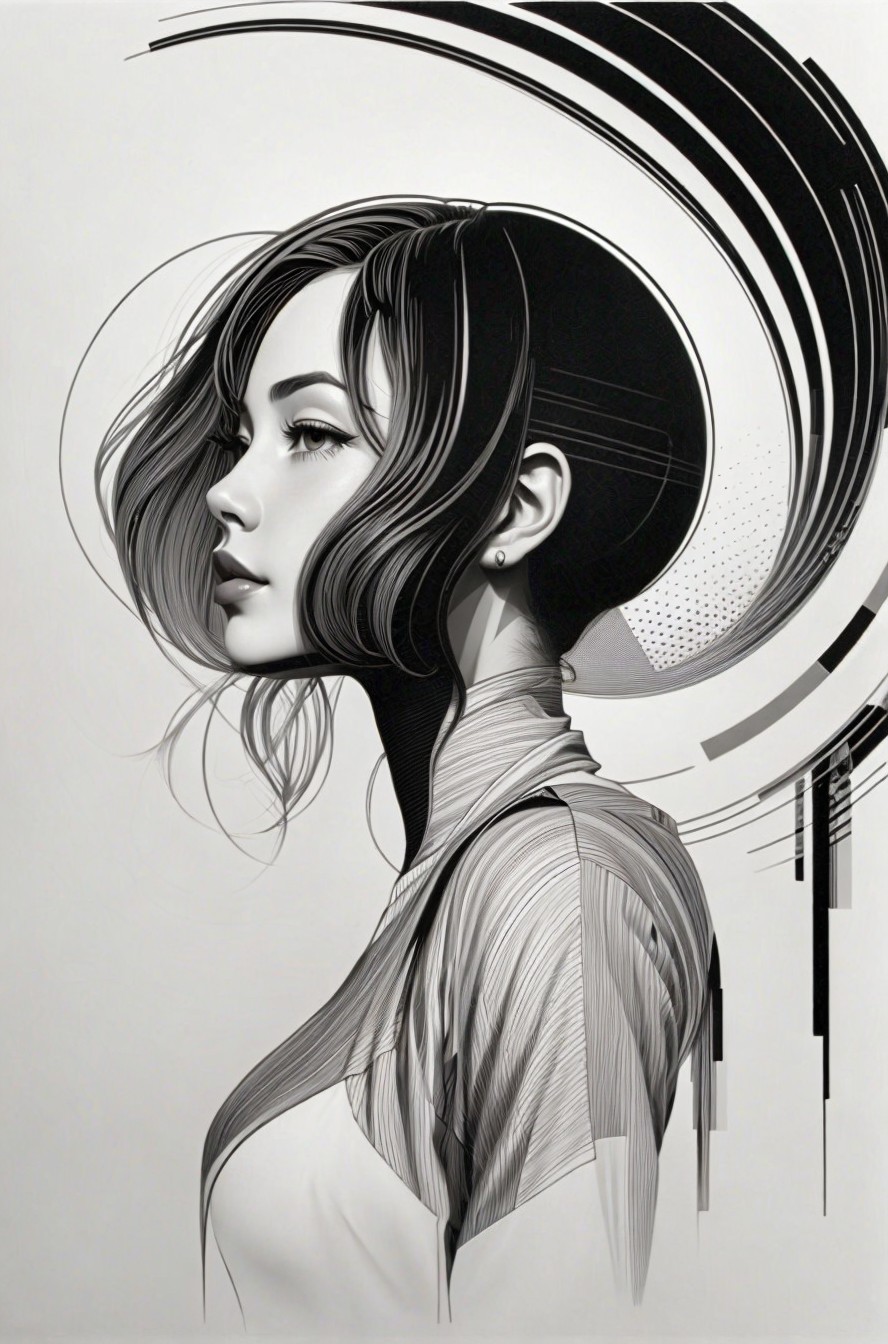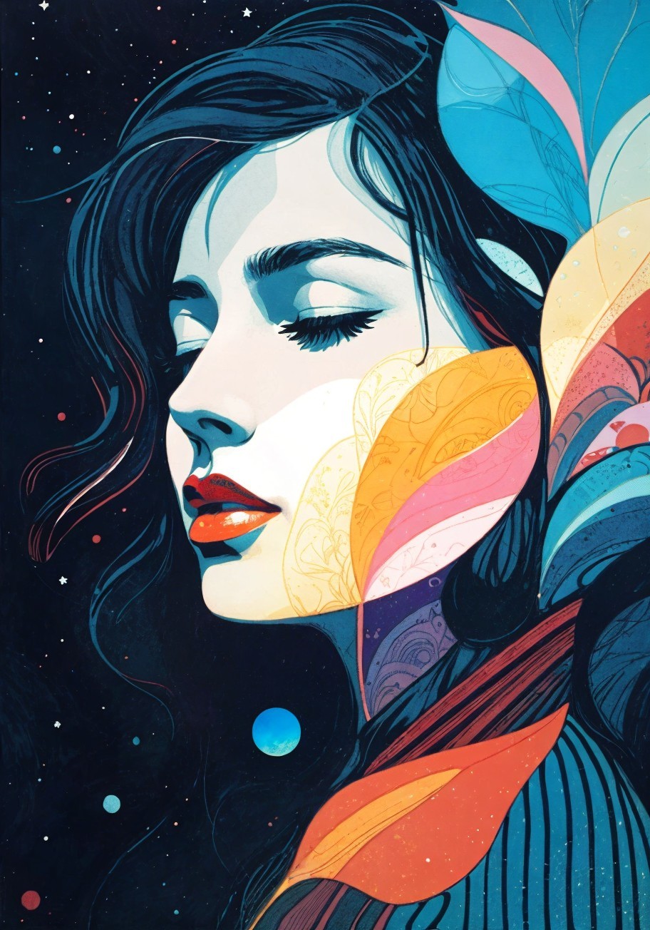 Prompt: Lush botanical dreamscapes, surreal celestial bodies, captivating collagraphy, vibrant printmaking-inspired artwork, simplistic line-art with dynamic color splashes, influenced by Edouard Vuillard, Sam Toft, and J. E. H. MacDonald. Features small stripes, natural lighting, soft shadows, half-closed eyes, and stacked lines. Embrace the serenity, evocative nature, and aesthetic integrity of lines and shapes in an action painting-style composition reminiscent of spatialism, simplistic magical realism in the style of Aliza Razell. cs-cr1stal-v2, UHD, HDR, 128k, 3d effects, dynamic lighting from top to bottom, upper body portrait, side view, featuring fine lines and artistic embellishments. Retro psychedelic style. The artwork, reminiscent of Art Nouveau, showcases hyperfeminine Witchcore elements with a dark gothical fantasy twist, highlighting the diva's pale skin, gradient inking colors in vibrant starfleet-blue and light-blue hues, warm pinkish blend of pastel tones, dynamic lighting is soft and diffused, enhancing the Bubblegum witch style, intricate line-art showcasing futuristic elements blending Cyberpunk and foampunk aesthetics, set in a 1970s Retrofuturistic Psychedelic Style inspired by Nam Yune Paik and Marcel Duchamp,sketch art approach. Utilize colorful gradient inking, warm coloring and geometric shapes harmoniously in an ethereal color palette with vibrant and subdued tones. Merge digital and traditional mediums for a whimsical and mysterious ambiance. Craft a transformative narrative with enchanting and enigmatic elements, drawing inspiration from Odilon Redon and Wangechi Mutu. Create an asymmetrical yet balanced composition that is transcendent, otherworldly, and rich in thought-provoking symbolism. Infuse cosmic influences, intricate patterns,