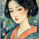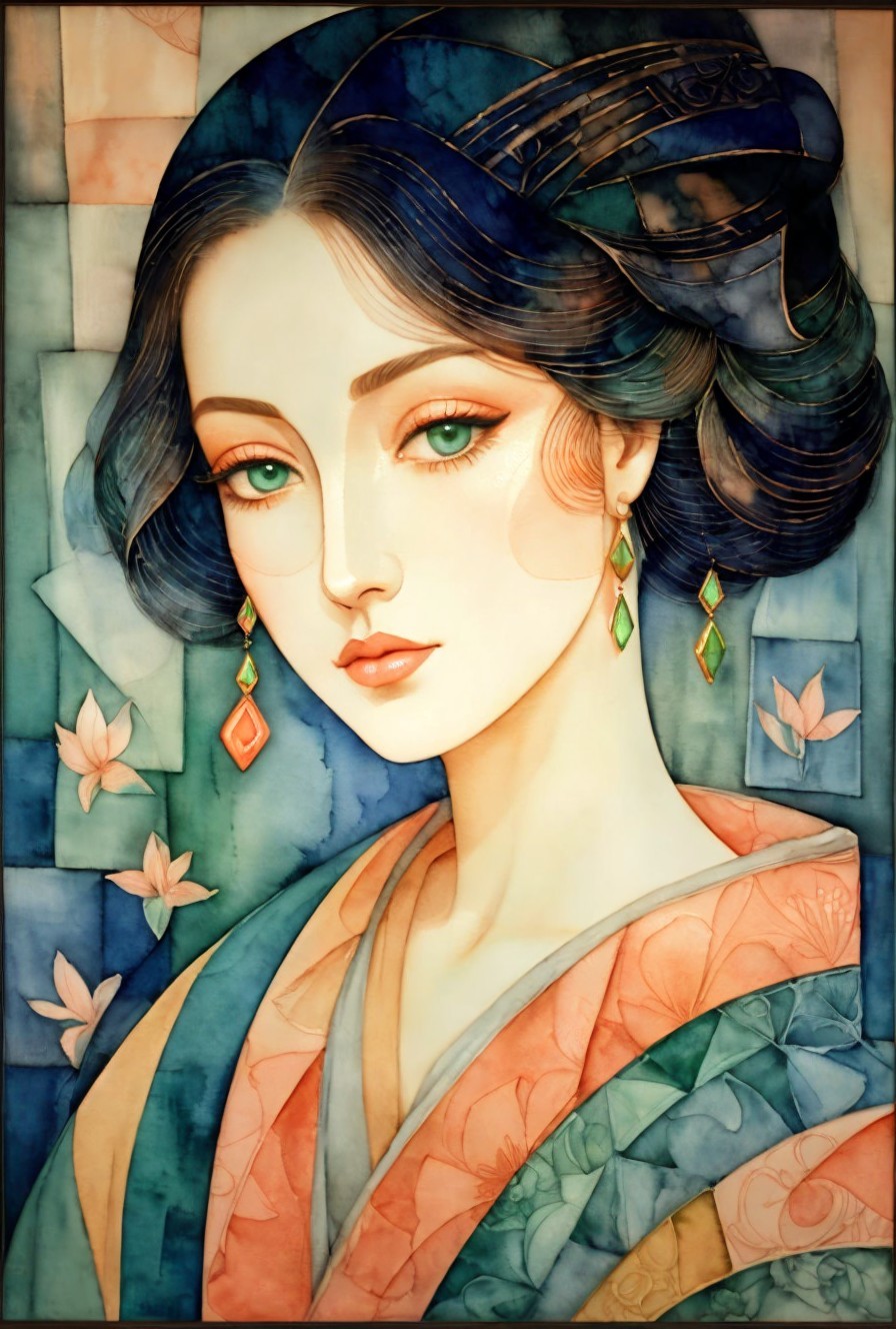 Prompt: Cubism portrait. Ink wash painting, infused watercoloring, opaque, translucent shapes, collagraphy elements, delicate linework, blurred edges for a soft focus effect, flowing key block lines in soft indigo and warm coral, intricately carved emerald green and pinks, delicate textures in ochre and grey. Byzantine face type. 128k, UHD, HDR, balanced coloring. Mip-mapping 1.3, displacement mapping, reflective mapping. Envision a play of light and shadows, pastel hues and urban tones, soft watery coloring, diffused ambiance & translucent layering & intricate details, evoking a sense of dreamlike intimacy. Capture the essence of ukiyo-e with bold outlines, flat colors, stippling, and high contrast, multi-block color woodcut and linocut print ,sfumato technique for subtle transitions, plasticity 1.8, fine micro-pen line art with warped watercoloring, skin texture, hues by Margaret Keane, warped, simplified trippy op-art, brightness 1.8, orphism reference, very abstract post-avantgarde style, triadic color scheme dark-pink magenta-red dark-grey, soft pastel colors, squiggly orphism and geometrical art merged with jsgraffito. outlines reminiscent of Francis Bacon and Georgia O'Keeffe and hues by Jim Davis, cel-shaded fine-line drawing with airbrush techniques, intricate line-art with diffused highlights and reflections, mip-mapping, texture mapping 1.3, dappled and rimmed shimmer, low key lighting, mip-mapping 1.2, liminal, diffusion, dynamic lighting form top to bottom, deconstructed, alternative, pollished, displacement mapping, simplicity and minimalism highlighted by delicate imperfections. colourful surreal, complex line-art, contouring forms by Lawrence Schwinger, dyed, nuanced painterly, abstract outlines, warped, tall and lean details, avant-garde merge with modernism, complex coloring reminiscent of Keith Haring's style,