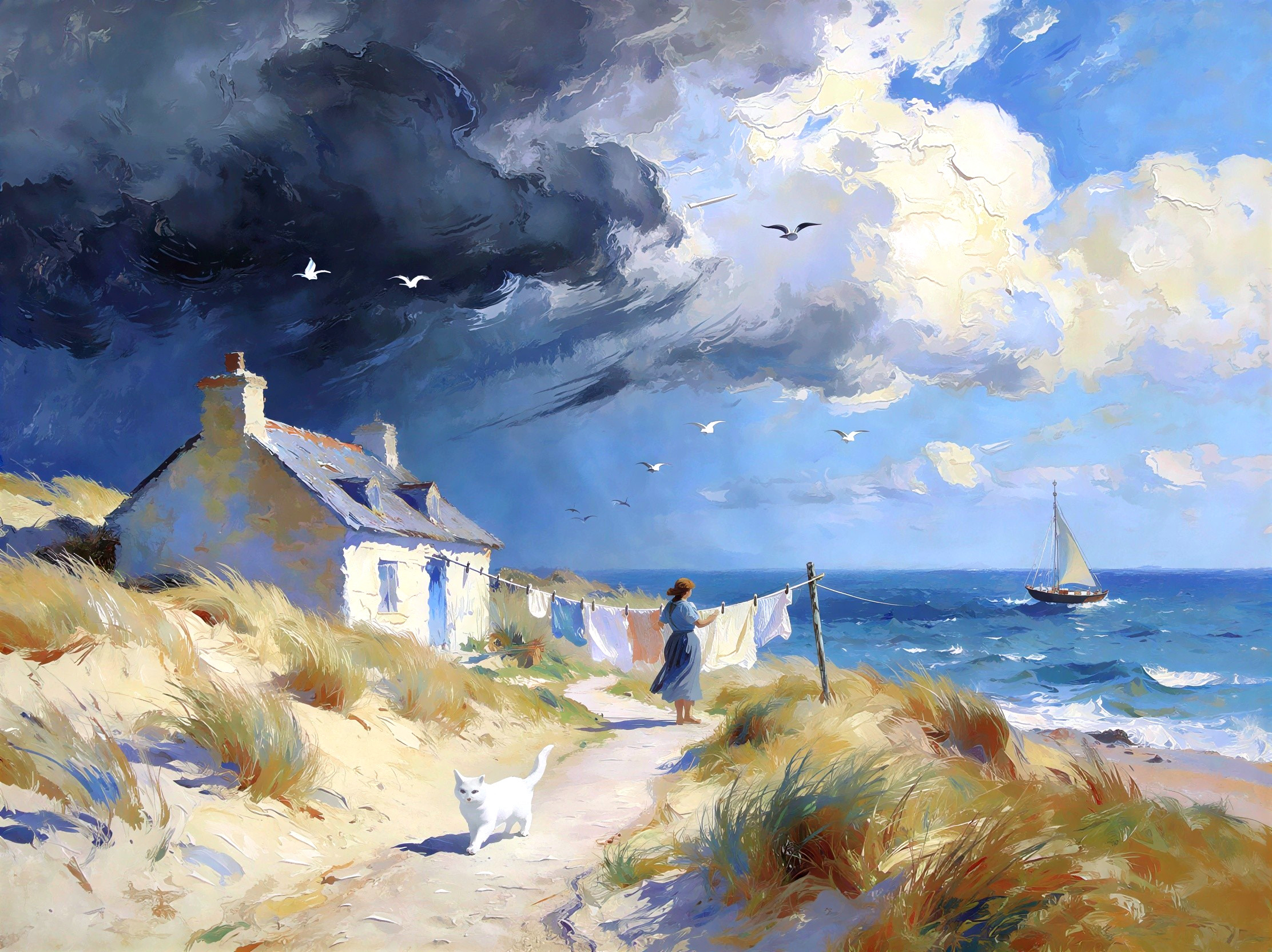 Rendered with expressive painterly brush strokes, soft yet precise detailing, and a refined glossy finish. Ultra-high resolution, 8K quality, up-scaled, maximum clarity, and meticulous craftsmanship. Every surface — skin, fabric, metal, and steam — is richly textured and intentionally composed.