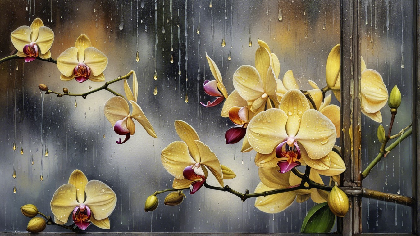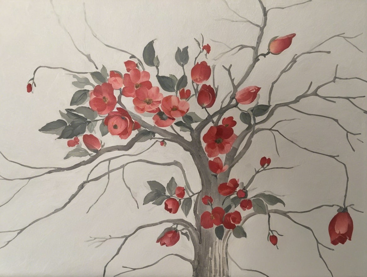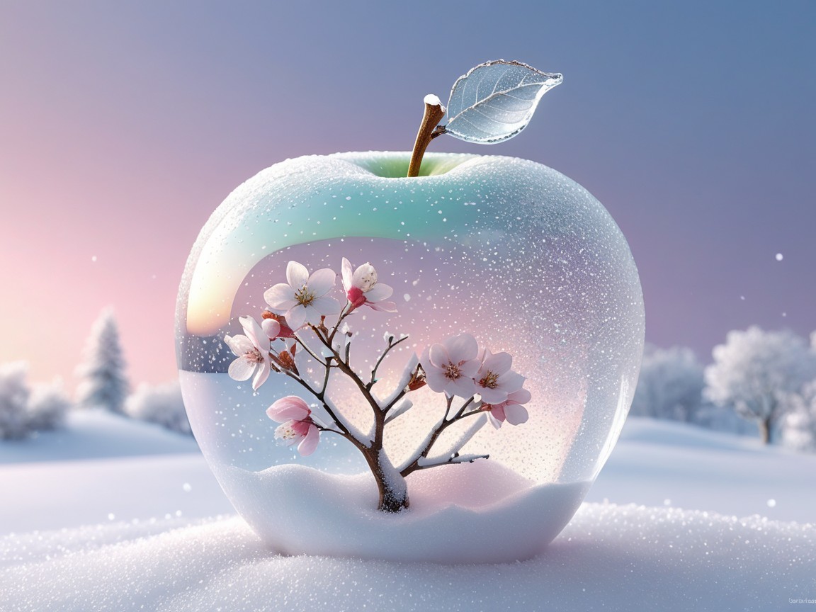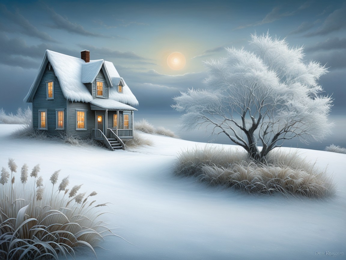 Prompt: Snow-covered winter still life, assortment of nuts, pinecones, carafe of red mulled wine, windowsill setting, old cottage ambiance, soft lighting, morning light filtering through window, lace curtains gently moving, impressionist watercolor, ink and alcohol wash, soft and dusty color palette, mystical and ethereal atmosphere, intricate details, delicate brushwork, dreamy and serene, artistic interpretation of winter coziness.