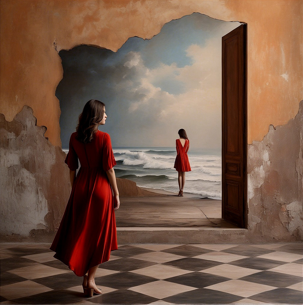 Prompt: Prompt by jexiq q: <<Masterpiece>>: Scene: Impasto, Glazing, Colored Ink Wash and Mixing Palette Knife Techniques: “Weight of the Present”