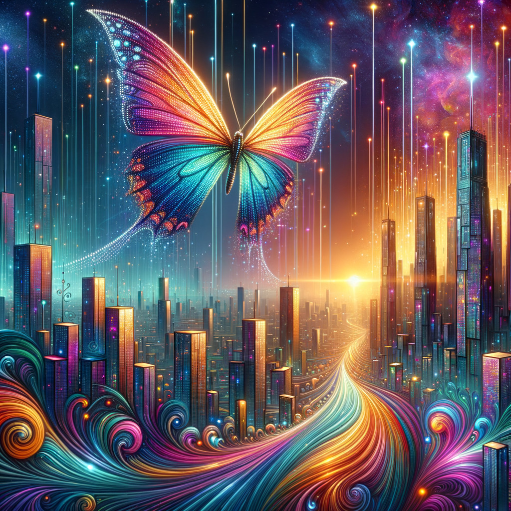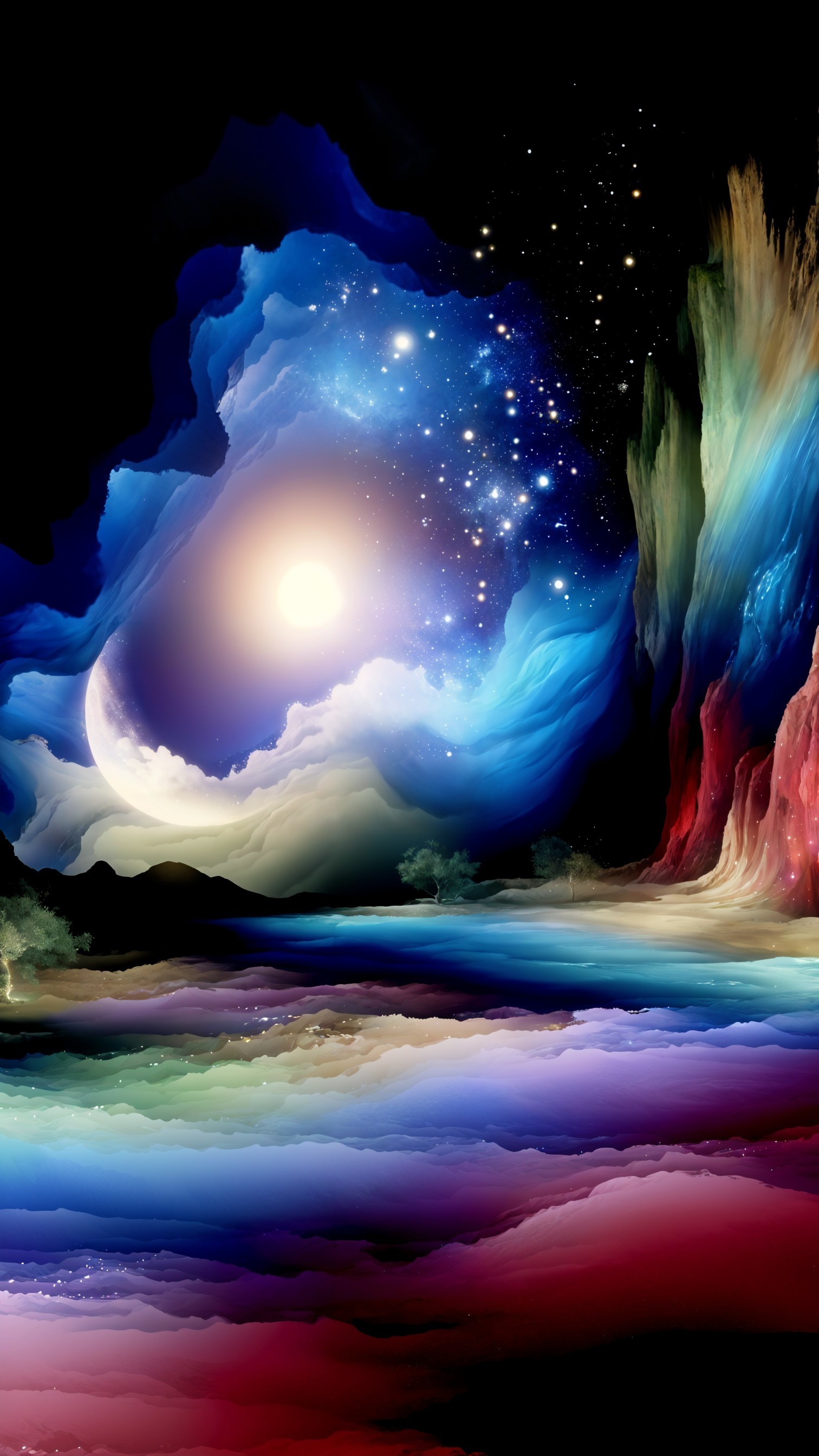 Dramatic sky with stormy clouds. Soft pencil drawing, with glowing golden sparks, vibrant iridescent colours, abstract surrealism, by Susanne.