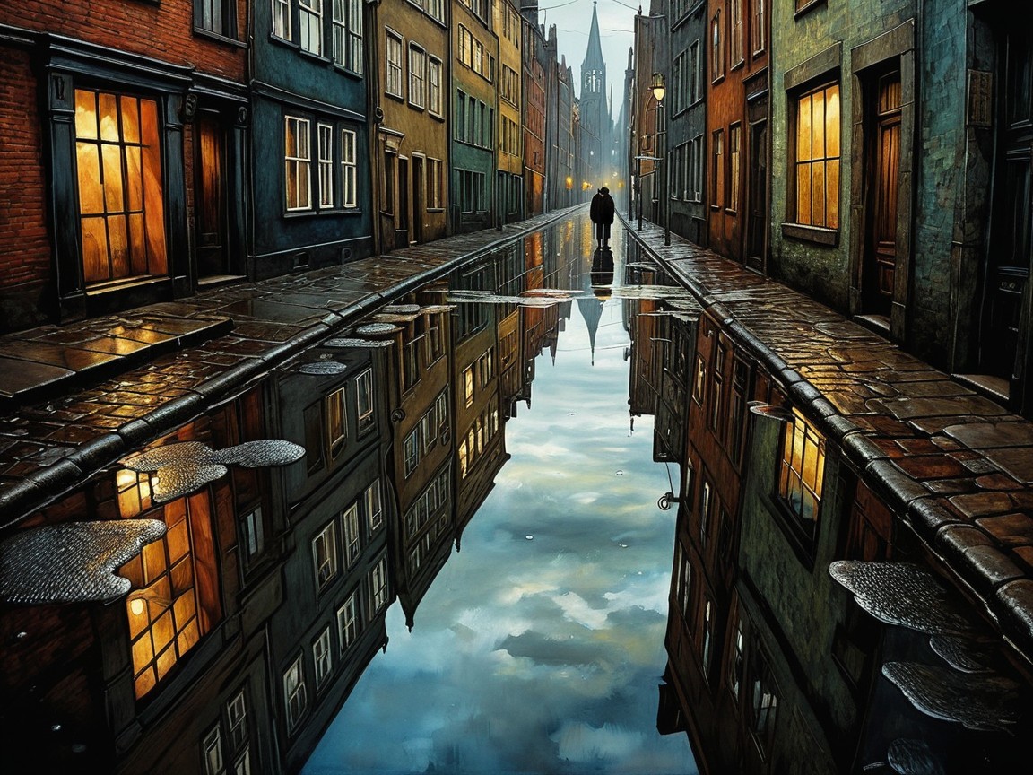 Prompt: Grunge textured, abstract, figurative, impasto mixed media painting with paint splashes, side portrait among fantastical, dreamlike, melancholic trees with iridescent metallic colors, silver and black lines, style Klee, Amanda Clarke, Andy Kehoe, Inge Shuster, Catherine Hyde, Odilon Redon, Angelina Wrona, Feininger, Klimt.