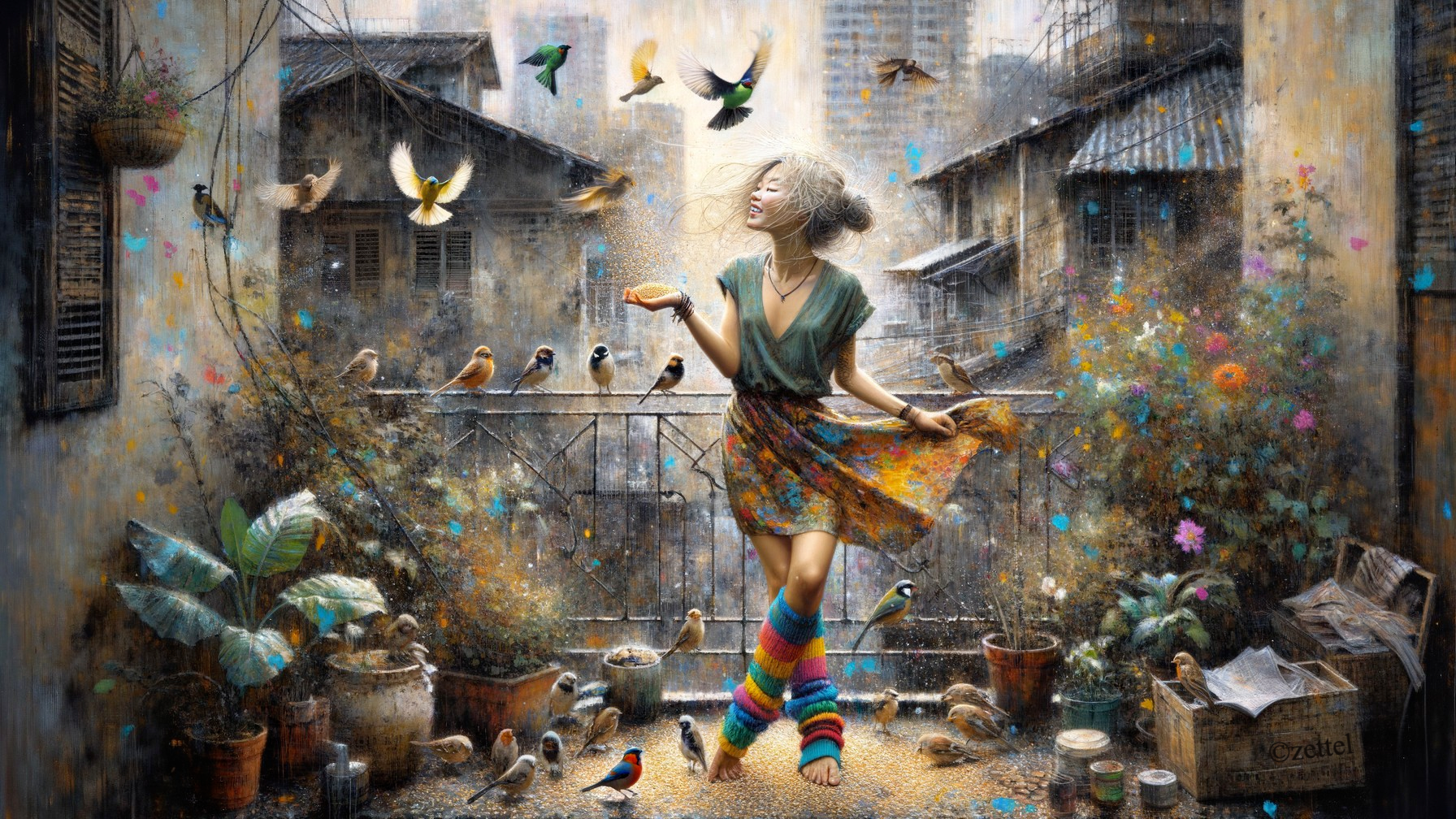 A moody backdrop creates an atmosphere of ethereal strangeness. High resolution fine detailed textures fine colors scratches, tears, burn marks, cracks in the paint in the mix style of Joan Miro, John Lavery, antique extreme canvas textured