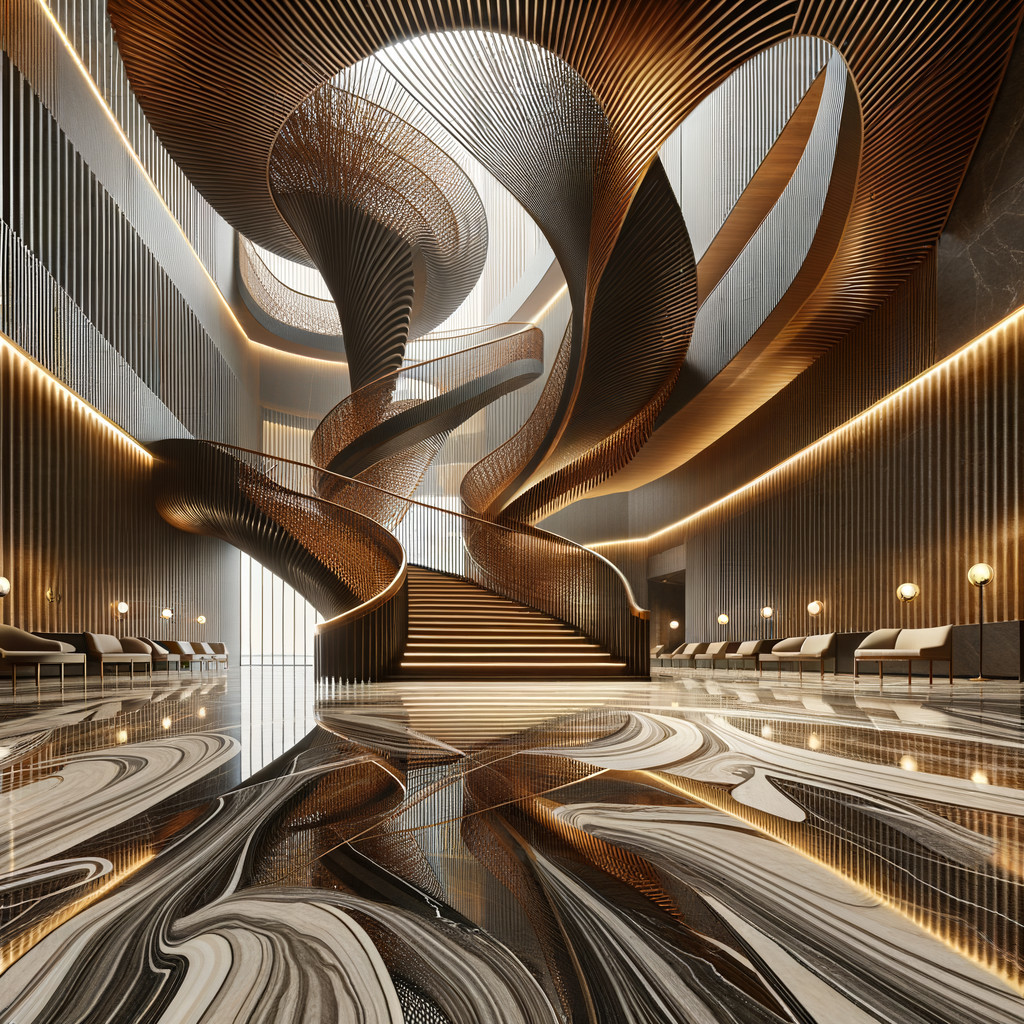 Prompt: imagine an Art Deco style watercolor painting with gold foil applied to buildings. image of a Winter Park with a frozen pond, a Christmas tree, ice skaters, in foreground. background shows a cityscape with dark blue buildings accents with gold foil and One building is entirely gold foil. Christmas vibes, festive, elegant styling.