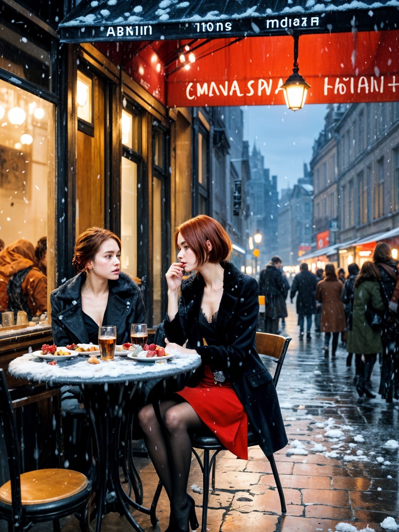 Prompt: Portrait of Kara Zor-El , Festive Christmas New Year style , New Year festive atmosphere , The style is Neo noir , sentimentalism ,elegant, Impressionism , Hans Holbein , Auguste Renoir , Franz Xaver Winterhalter , vintage, oil, masterpiece, high detail, art station