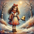 Prompt: 1940 era. Night. Christmas trees, snowing dark clouds, frozen pond with ice skaters, dreamy atmosphere, magical glow, masterful watercolor by Willem Haenraets' whimsy, Griffith's expressive strokes, and James Gurney's atmospheric use of light.