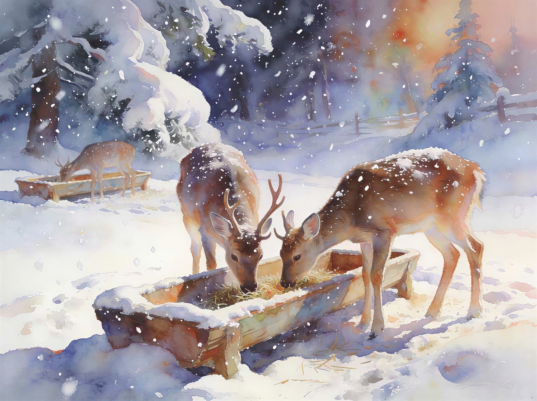 Prompt: A winter landscape scene illuminated by a warm sun, flowerbeds covered in a blanket of snow and snowdrops scattered here and there, two charming children walking happily. The little girl is wearing a patchwork coat and a woolen hat with a pom pom, while the little boy is also wearing a patchwork coat and a woolen hat. Joyful expressions, a Christmassy atmosphere, oil and watercolor painting, detailed brushstrokes, delicate colors, soft shades, a traditional style, a touching atmosphere, medium brushstrokes, warm natural light, a happy and carefree mood.